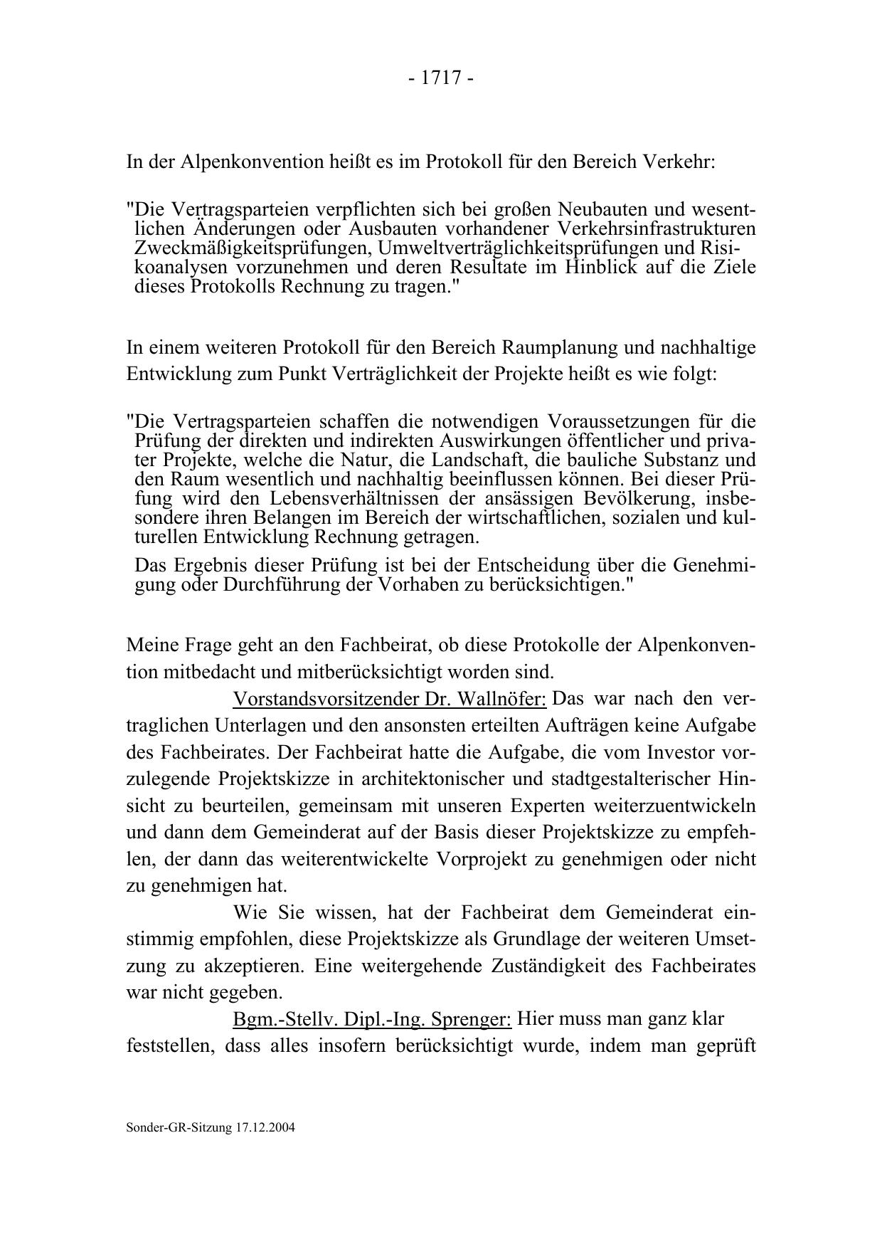 Meine Frage geht an den Fachbeirat, ob diese Protokolle der Alpenkonvention mitbedacht und mitberücksichtigt worden sind.