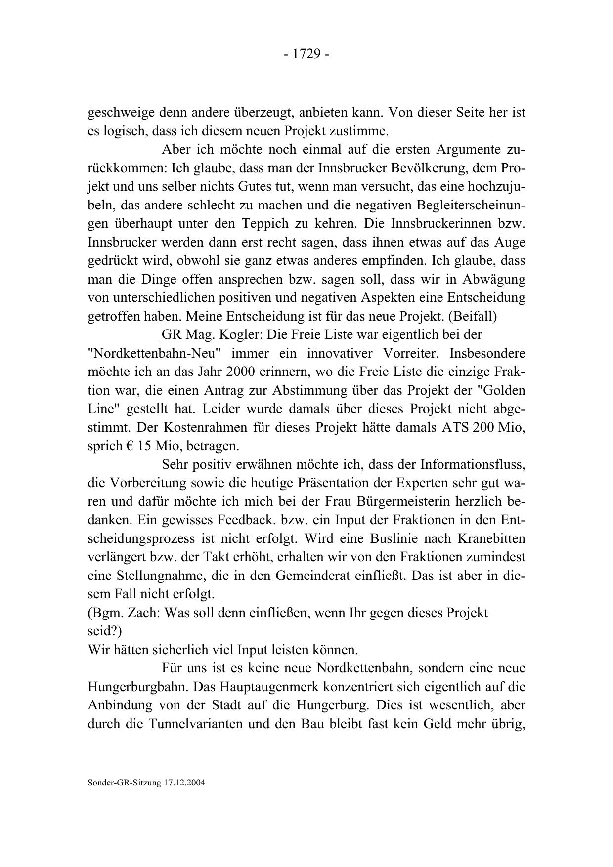 Aber ich möchte noch einmal auf die ersten Argumente zurückkommen: Ich glaube, dass man der Innsbrucker Bevölkerung, dem Projekt und uns selber nichts Gutes tut, wenn man versucht, das eine hochzujubeln, das andere schlecht zu machen und die negativen Begleiterscheinungen überhaupt unter den Teppich zu kehren. Die Innsbruckerinnen bzw.