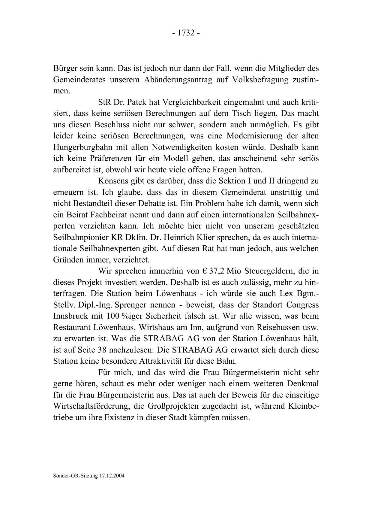 ein Beirat Fachbeirat nennt und dann auf einen internationalen Seilbahnexperten verzichten kann. Ich möchte hier nicht von unserem geschätzten