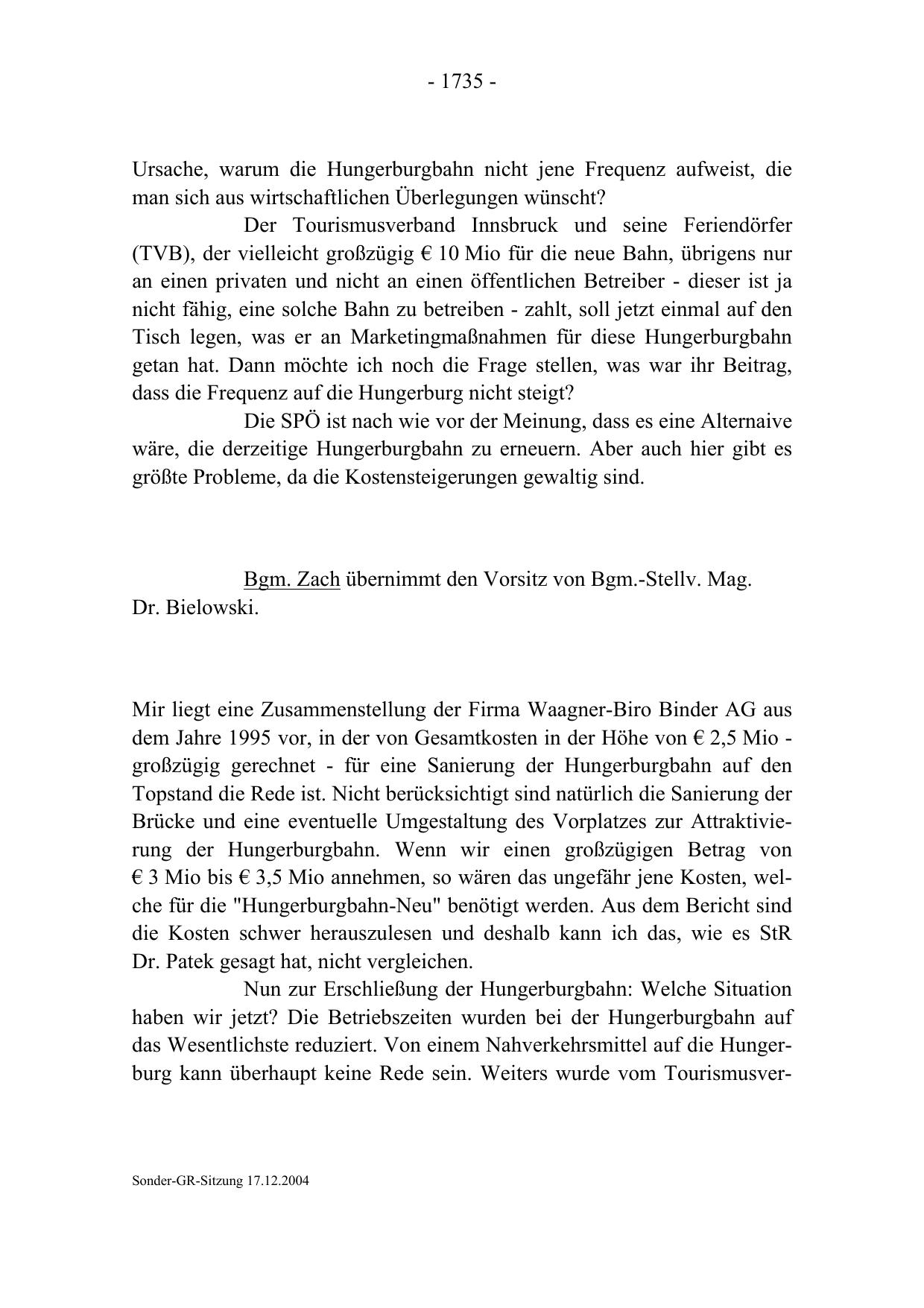 das Wesentlichste reduziert. Von einem Nahverkehrsmittel auf die Hungerburg kann überhaupt keine Rede sein. Weiters wurde vom Tourismusver-
