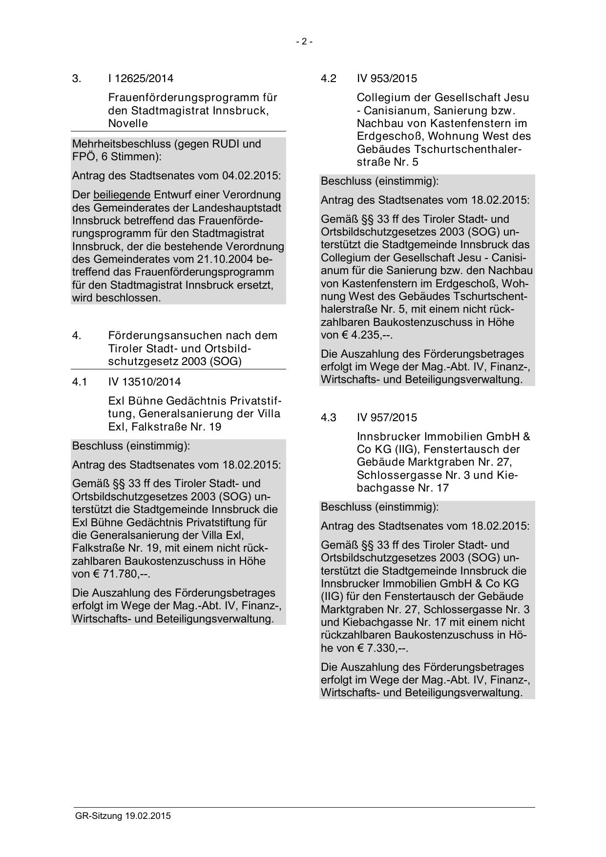 Antrag des Stadtsenates vom 04.02.2015: