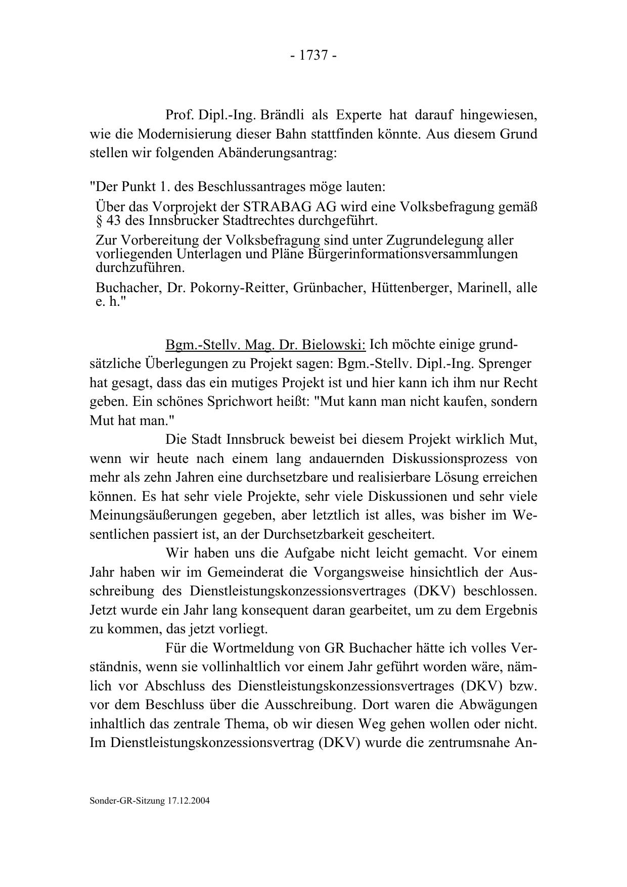Bgm.-Stellv. Mag. Dr. Bielowski: Ich möchte einige grundsätzliche Überlegungen zu Projekt sagen: Bgm.-Stellv. Dipl.-Ing. Sprenger