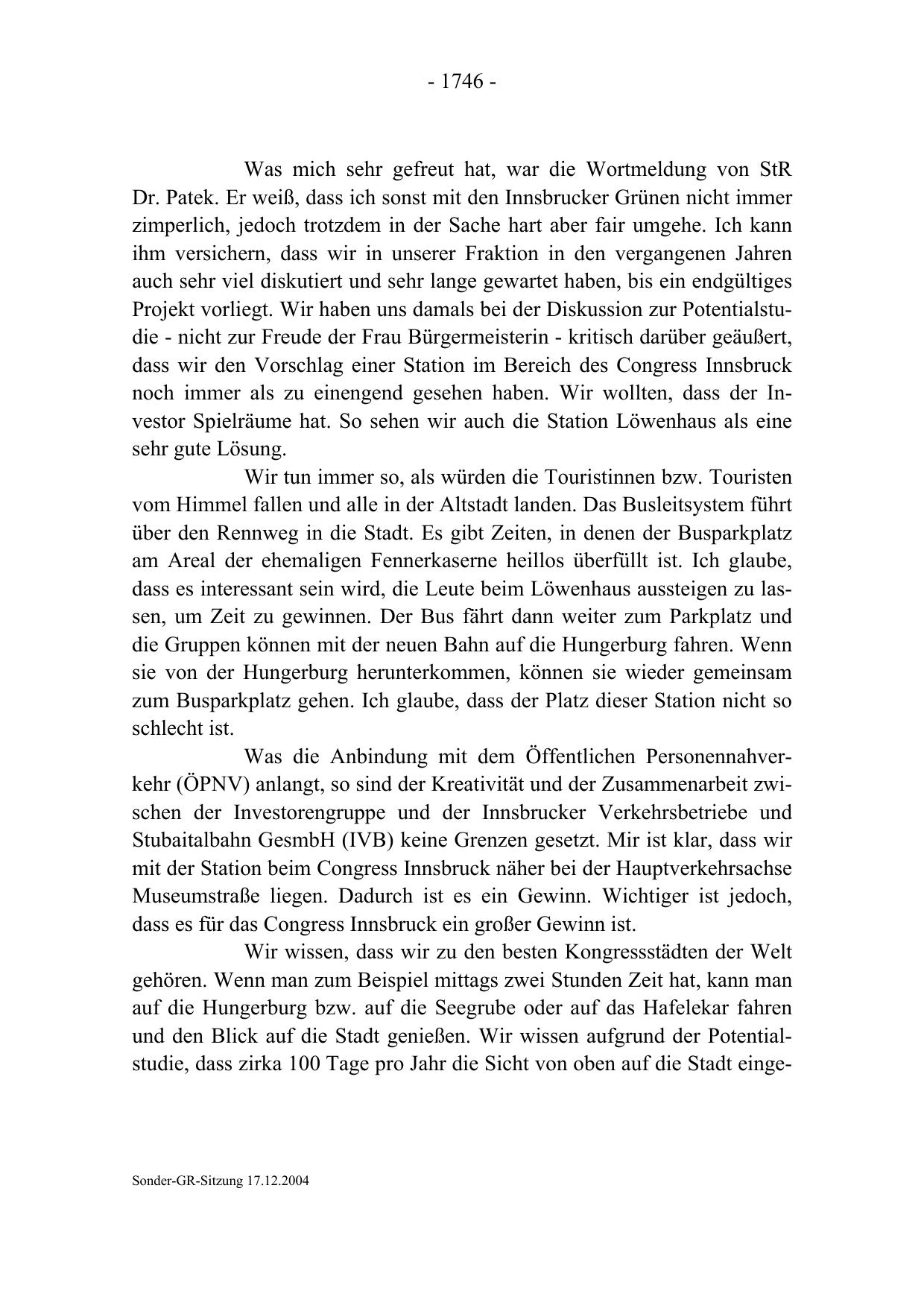 Dr. Patek. Er weiß, dass ich sonst mit den Innsbrucker Grünen nicht immer