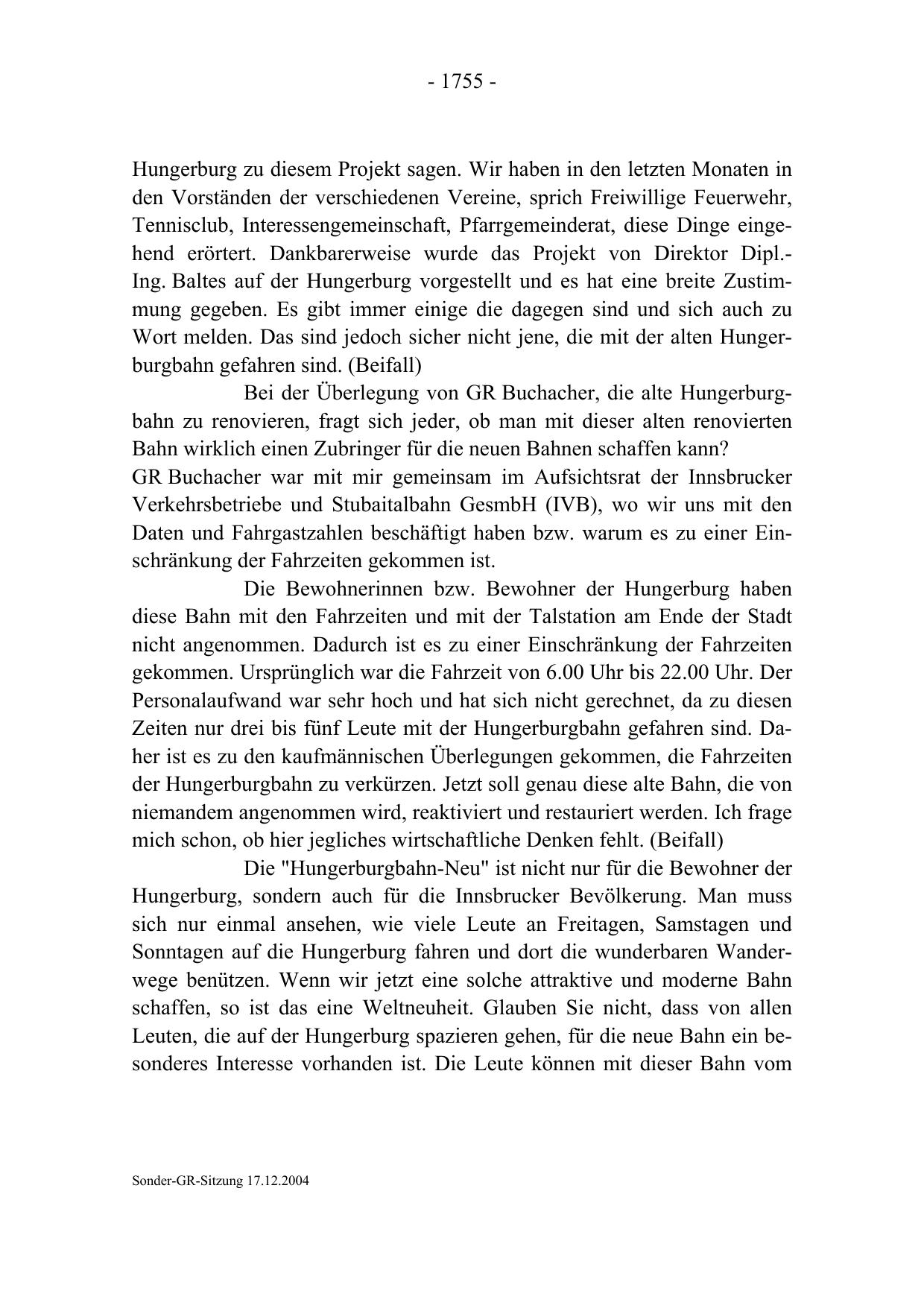 Wort melden. Das sind jedoch sicher nicht jene, die mit der alten Hungerburgbahn gefahren sind. (Beifall)