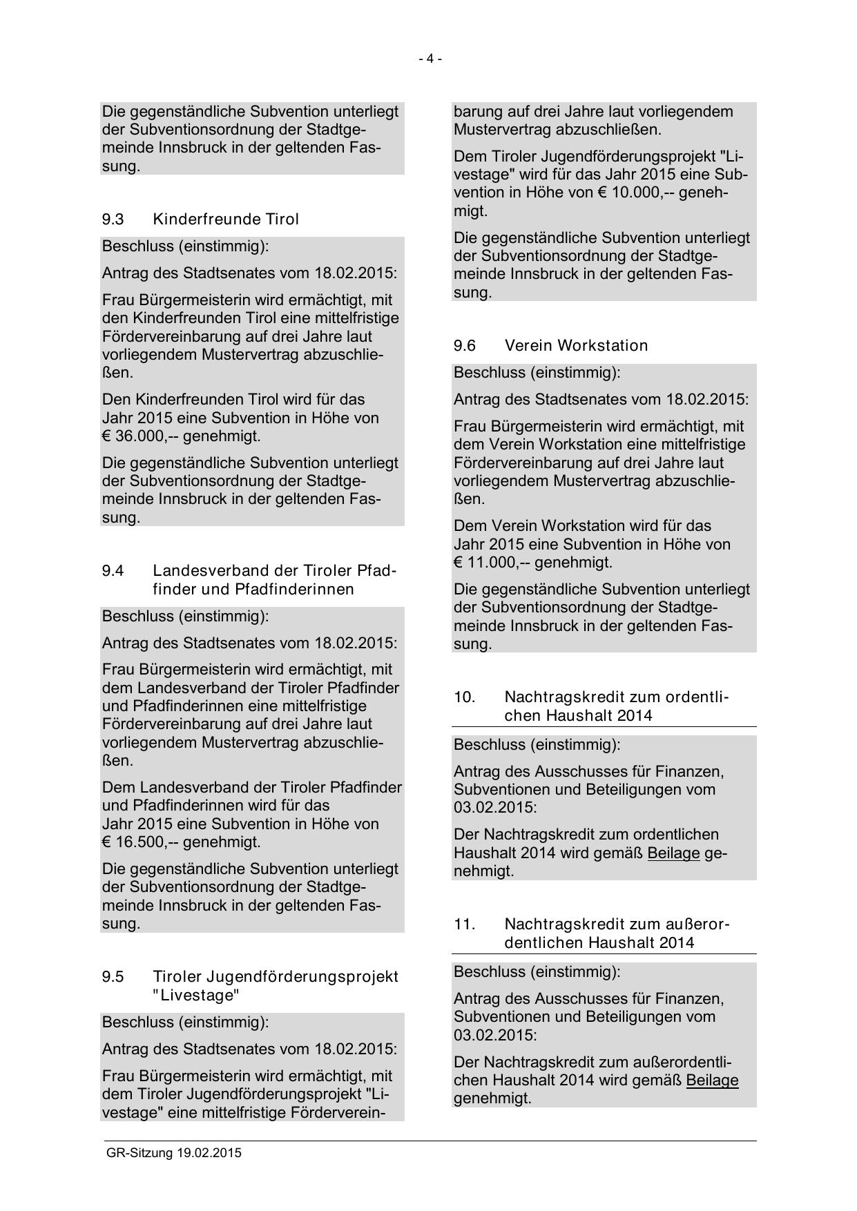 dem Tiroler Jugendförderungsprojekt "Livestage" eine mittelfristige FördervereinGR-Sitzung 19.02.2015