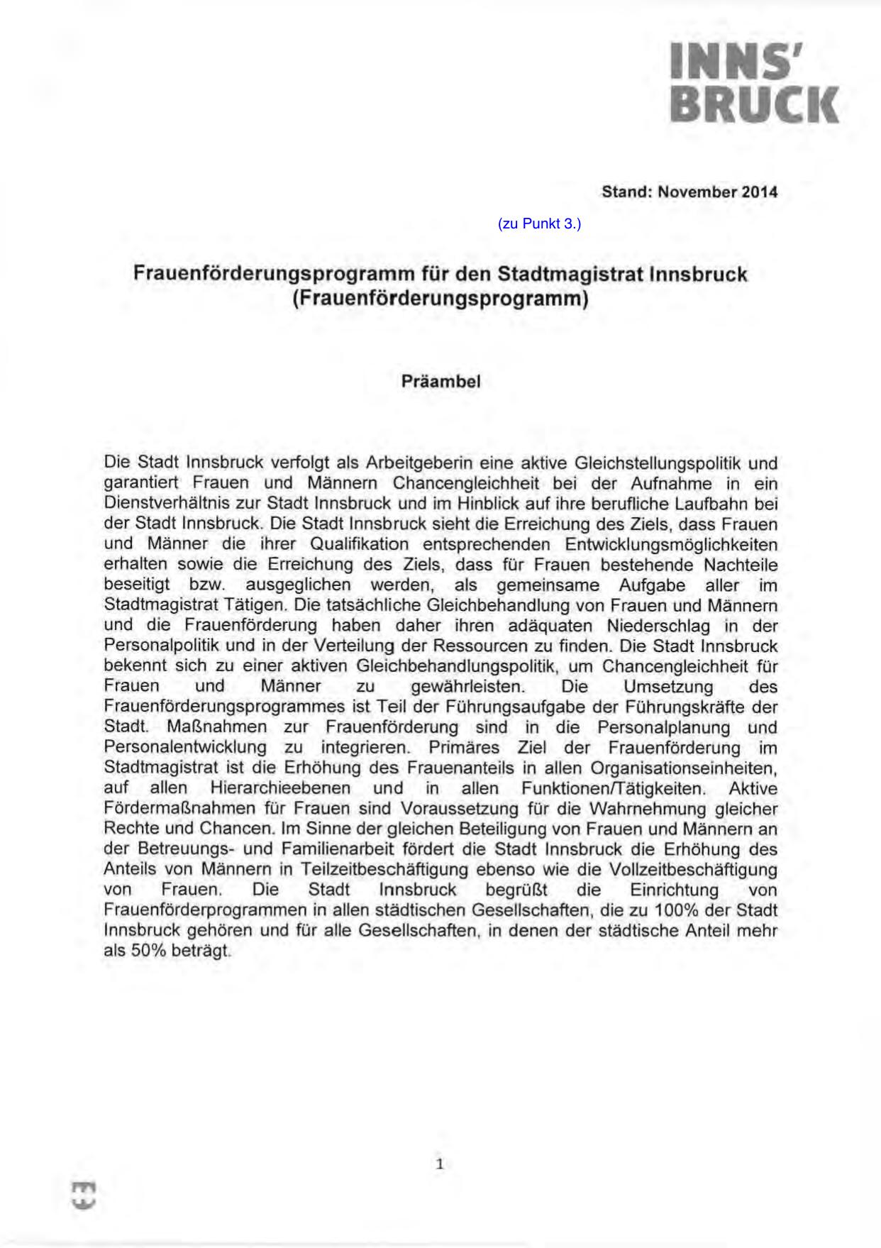 Frauenförderungsprogramm für den Stadtmagistrat Innsbruck