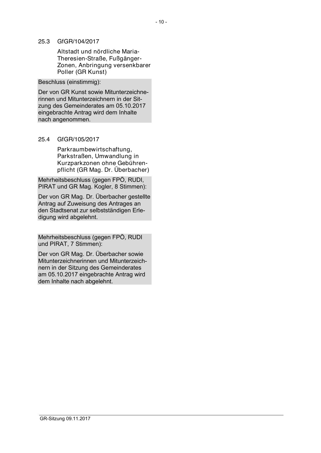 Mehrheitsbeschluss (gegen FPÖ, RUDI,