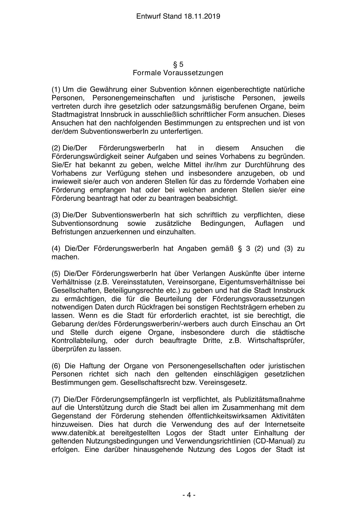 Stadtmagistrat Innsbruck in ausschließlich schriftlicher Form ansuchen. Dieses