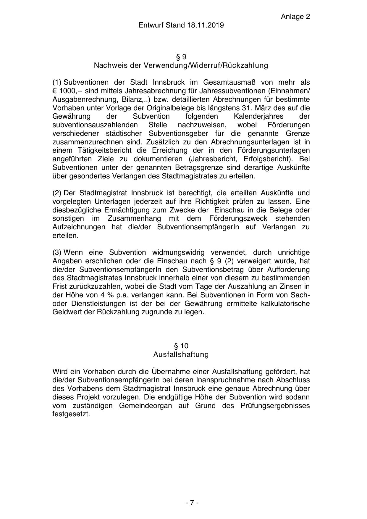 (1) Subventionen der Stadt Innsbruck im Gesamtausmaß von mehr als