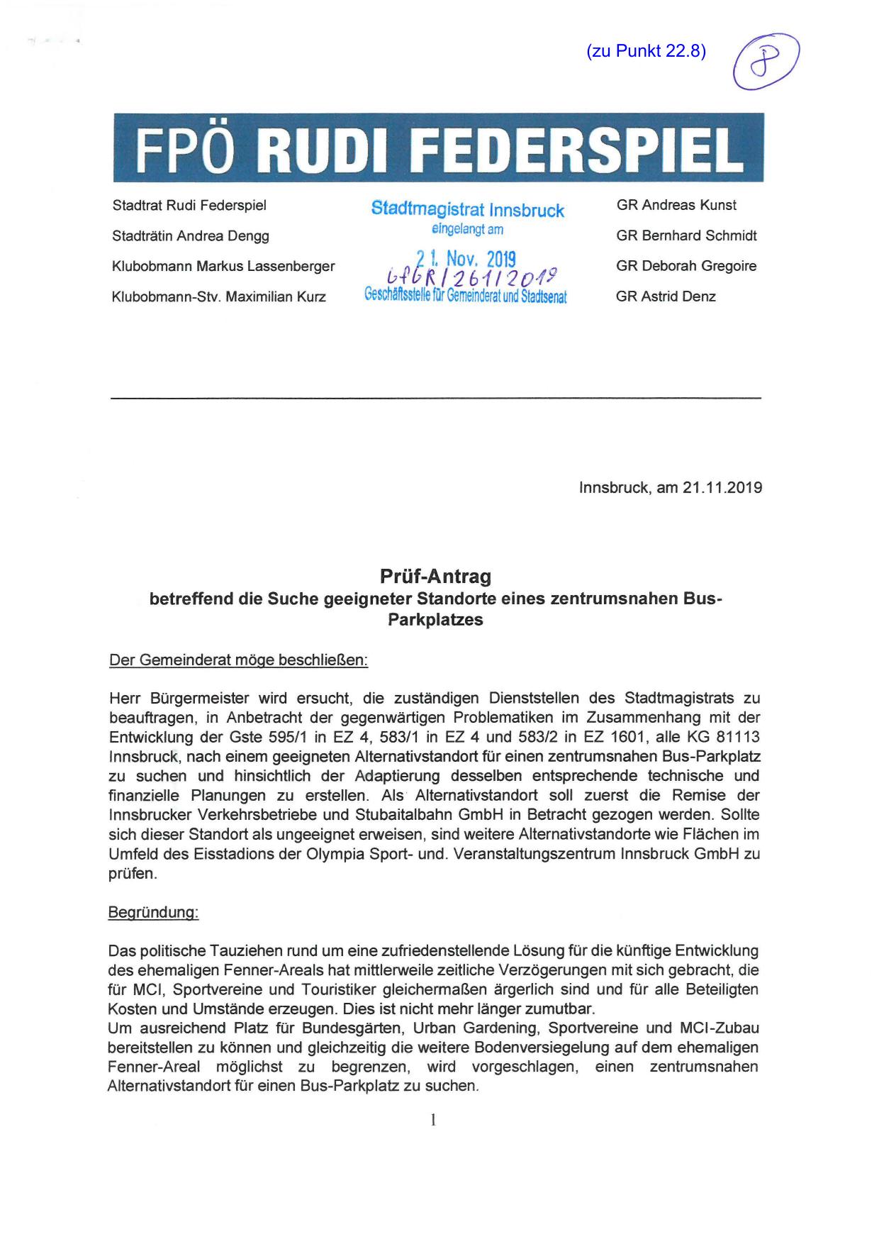 betreffend die Suche geeigneter Standorte eines zentrumsnahen BusParkplatzes
