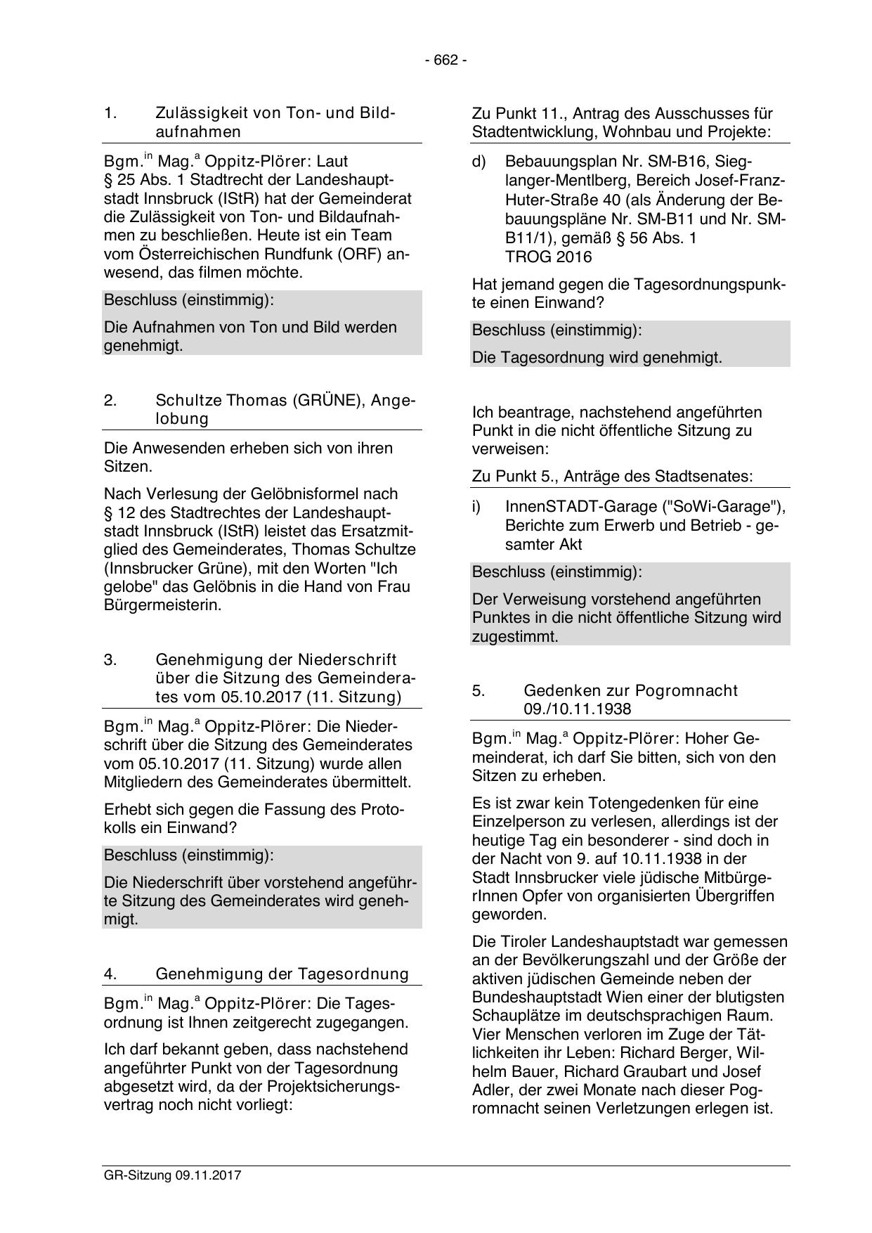 Bgm.in Mag.a Oppitz-Plörer: Die Niederschrift über die Sitzung des Gemeinderates