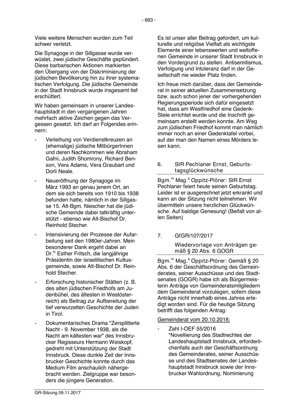Landeshauptstadt Innsbruck, erforderlichenfalls auch der Geschäftsordnung