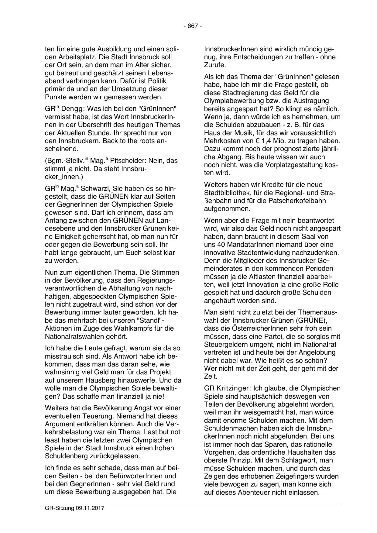 vermisst habe, ist das Wort InnsbruckerInnen in der Überschrift des heutigen Themas