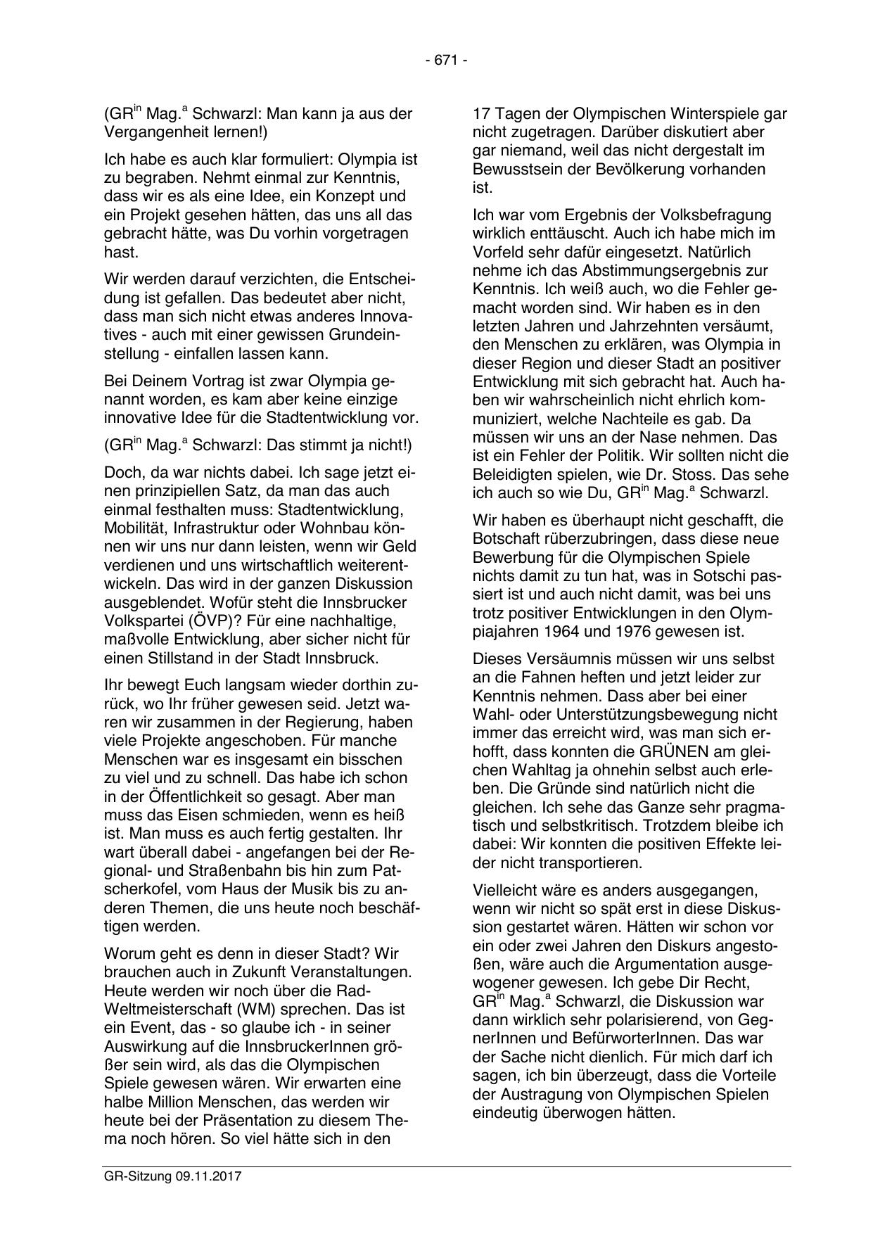 Auswirkung auf die InnsbruckerInnen größer sein wird, als das die Olympischen