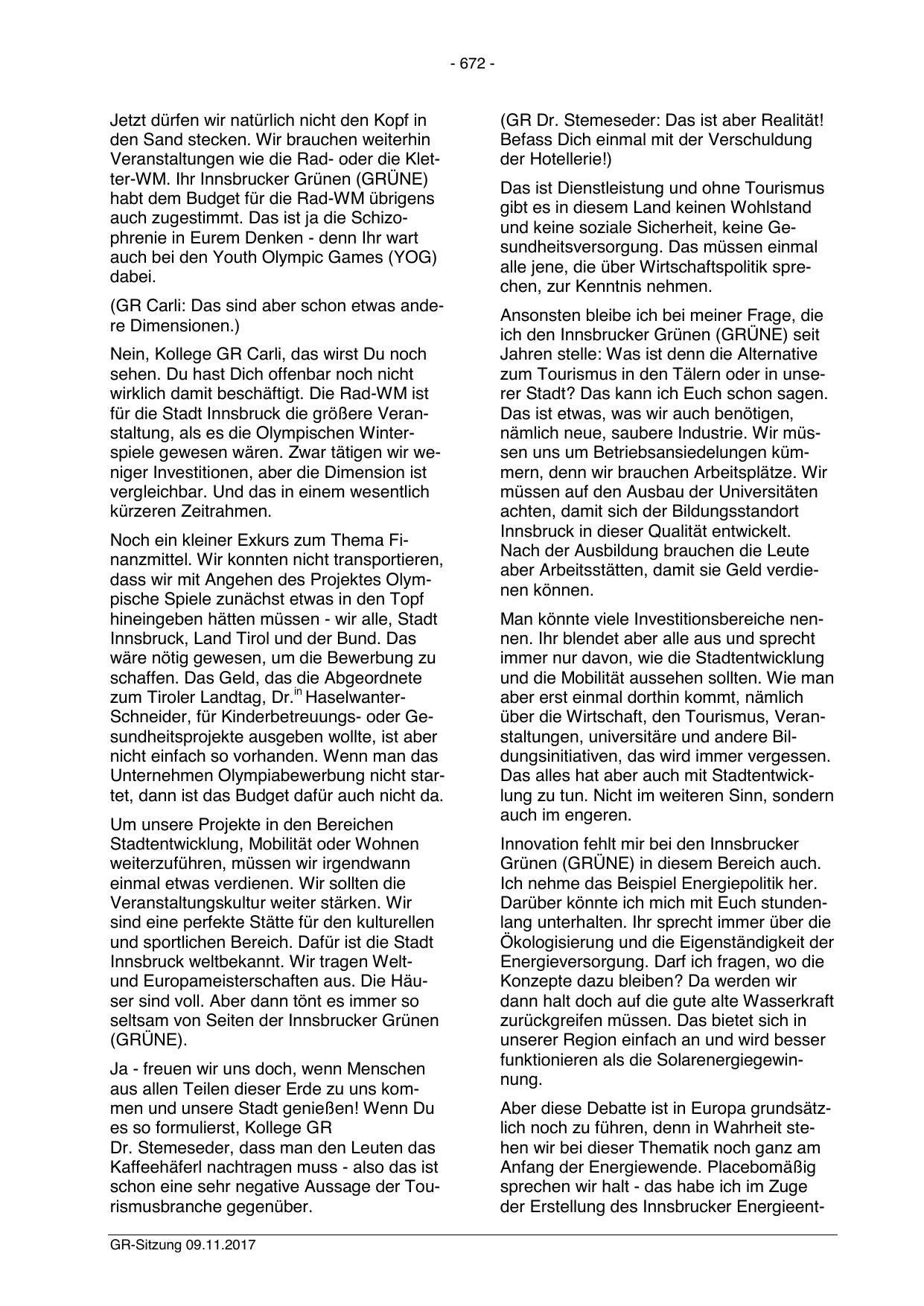 Veranstaltungen wie die Rad- oder die Kletter-WM. Ihr Innsbrucker Grünen (GRÜNE)