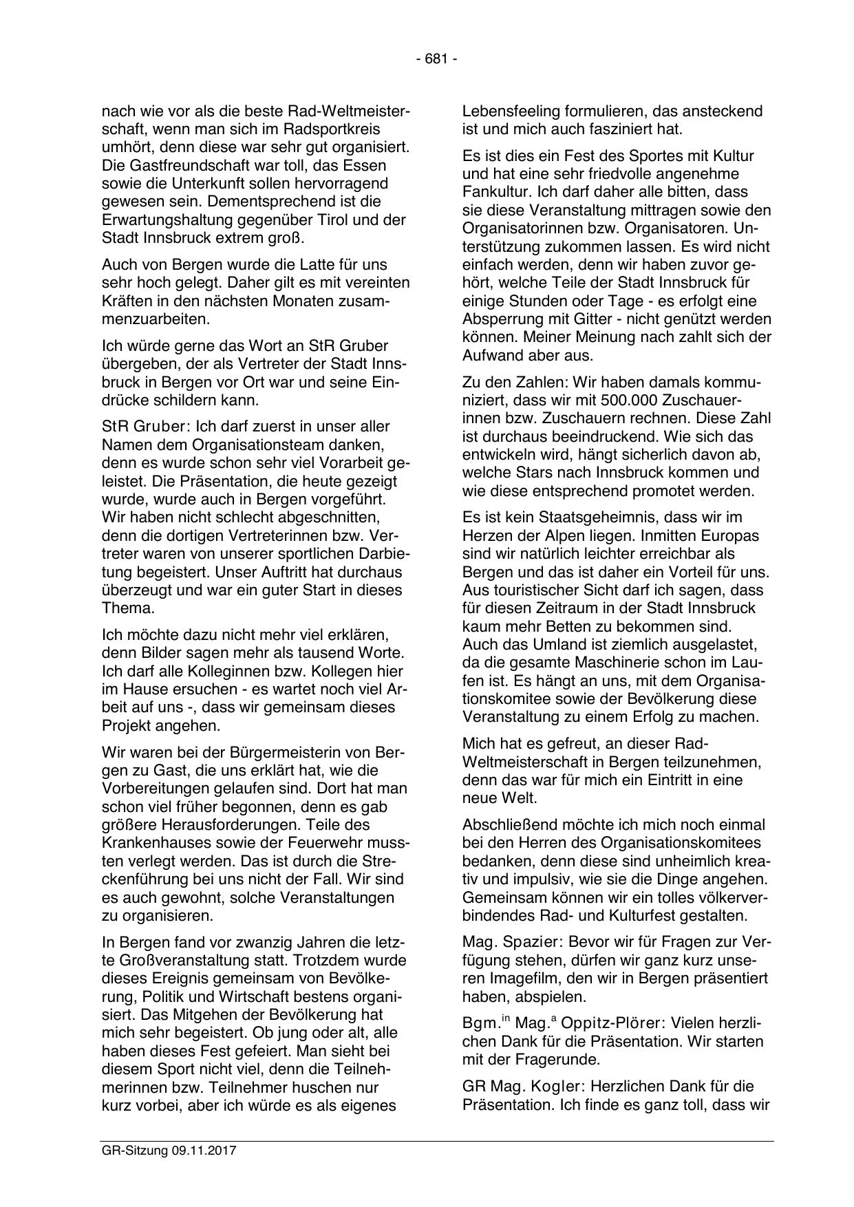 einfach werden, denn wir haben zuvor gehört, welche Teile der Stadt Innsbruck für