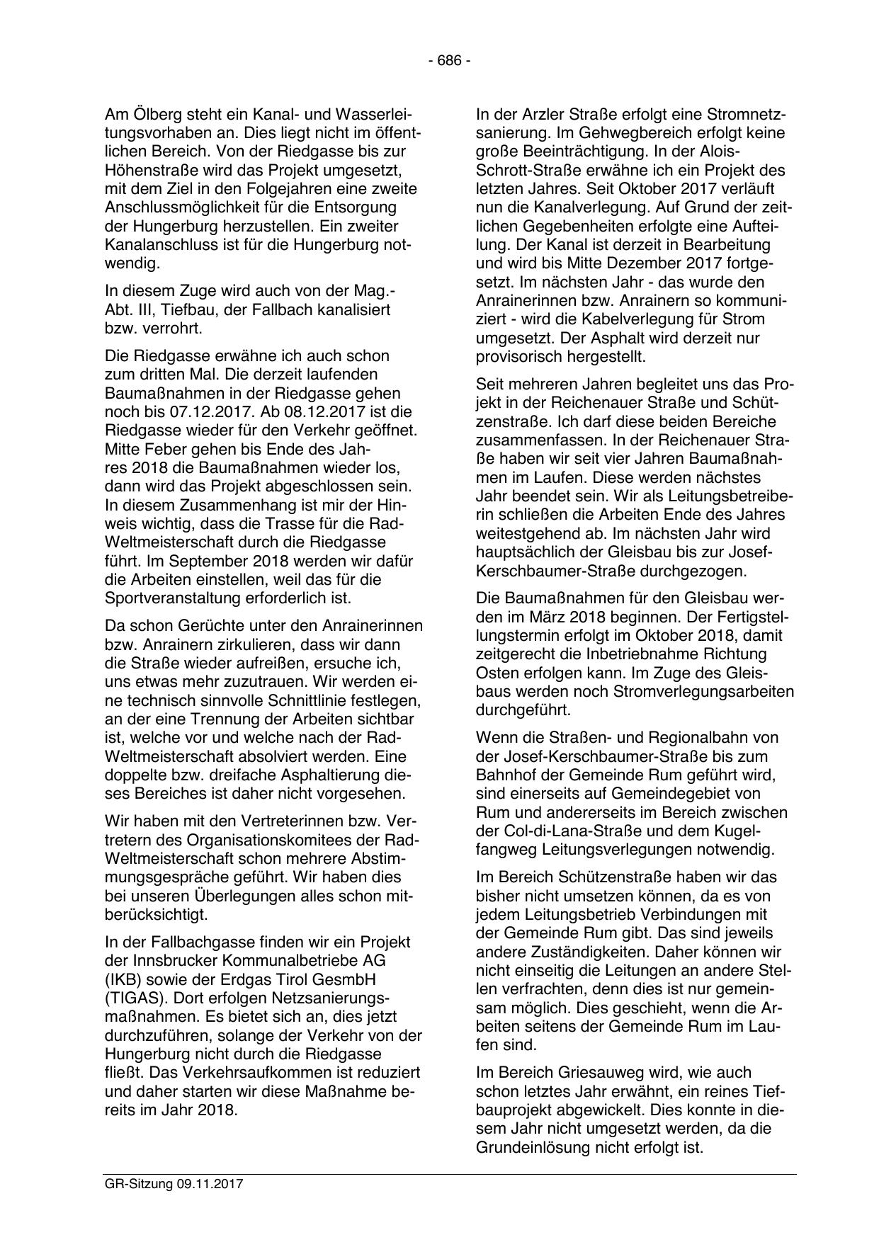 nicht einseitig die Leitungen an andere Stellen verfrachten, denn dies ist nur gemeinsam möglich. Dies geschieht, wenn die Arbeiten seitens der Gemeinde Rum im Laufen sind.