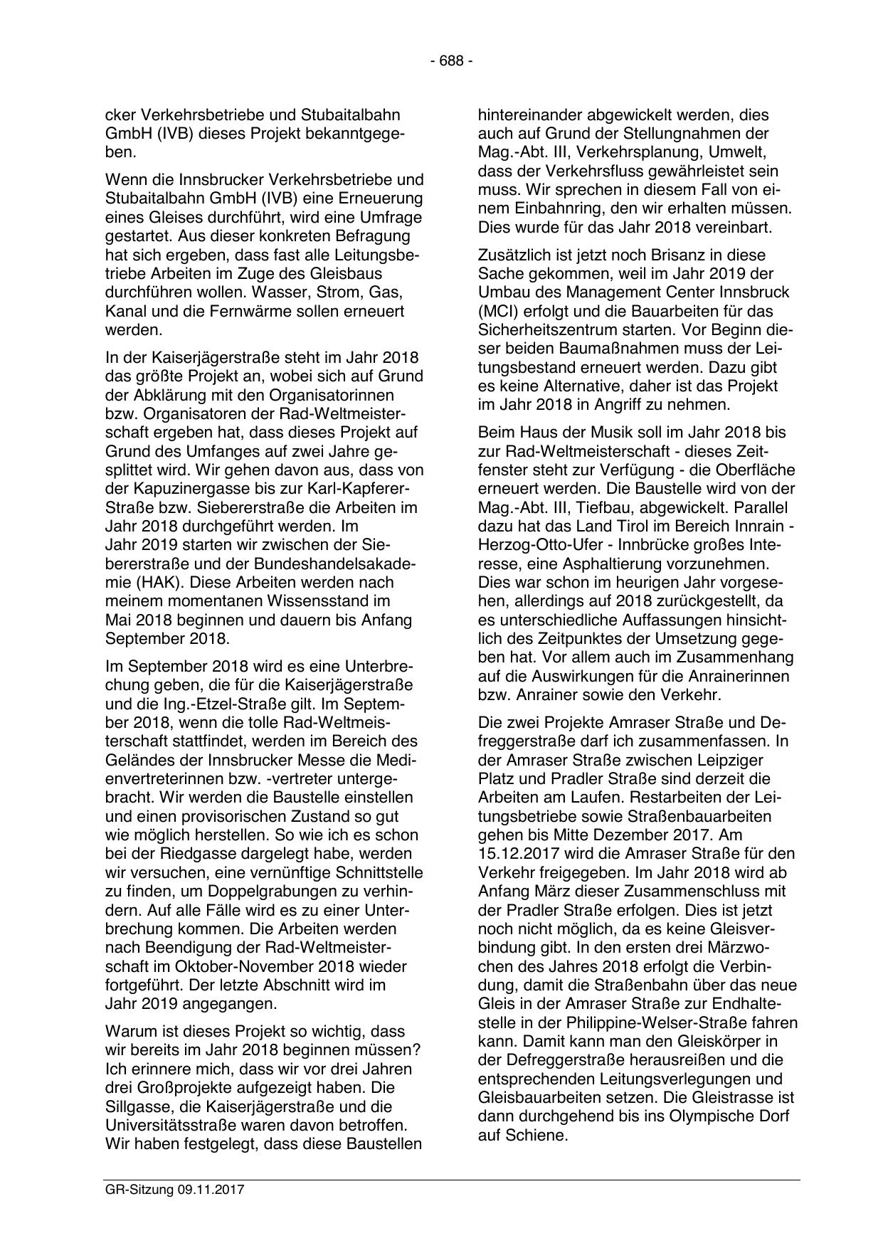 Die zwei Projekte Amraser Straße und Defreggerstraße darf ich zusammenfassen. In