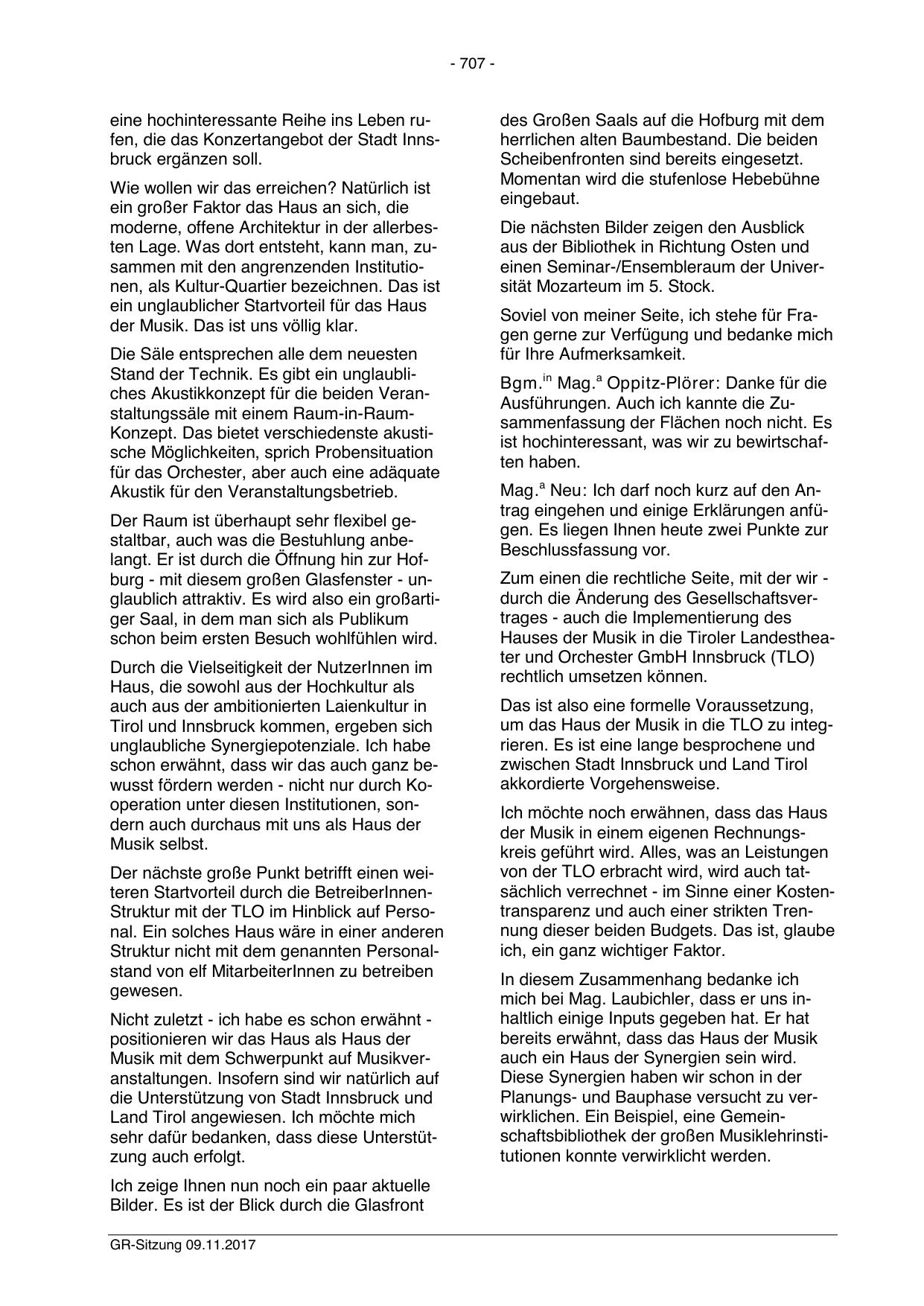 Hauses der Musik in die Tiroler Landestheater und Orchester GmbH Innsbruck (TLO)