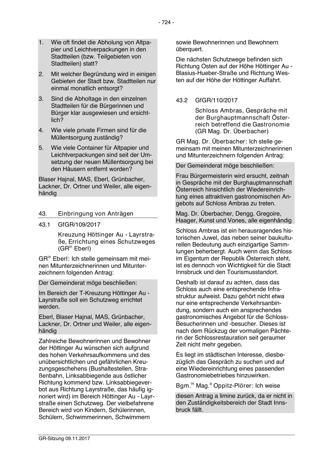 den Zuständigkeitsbereich der Stadt Innsbruck fällt.