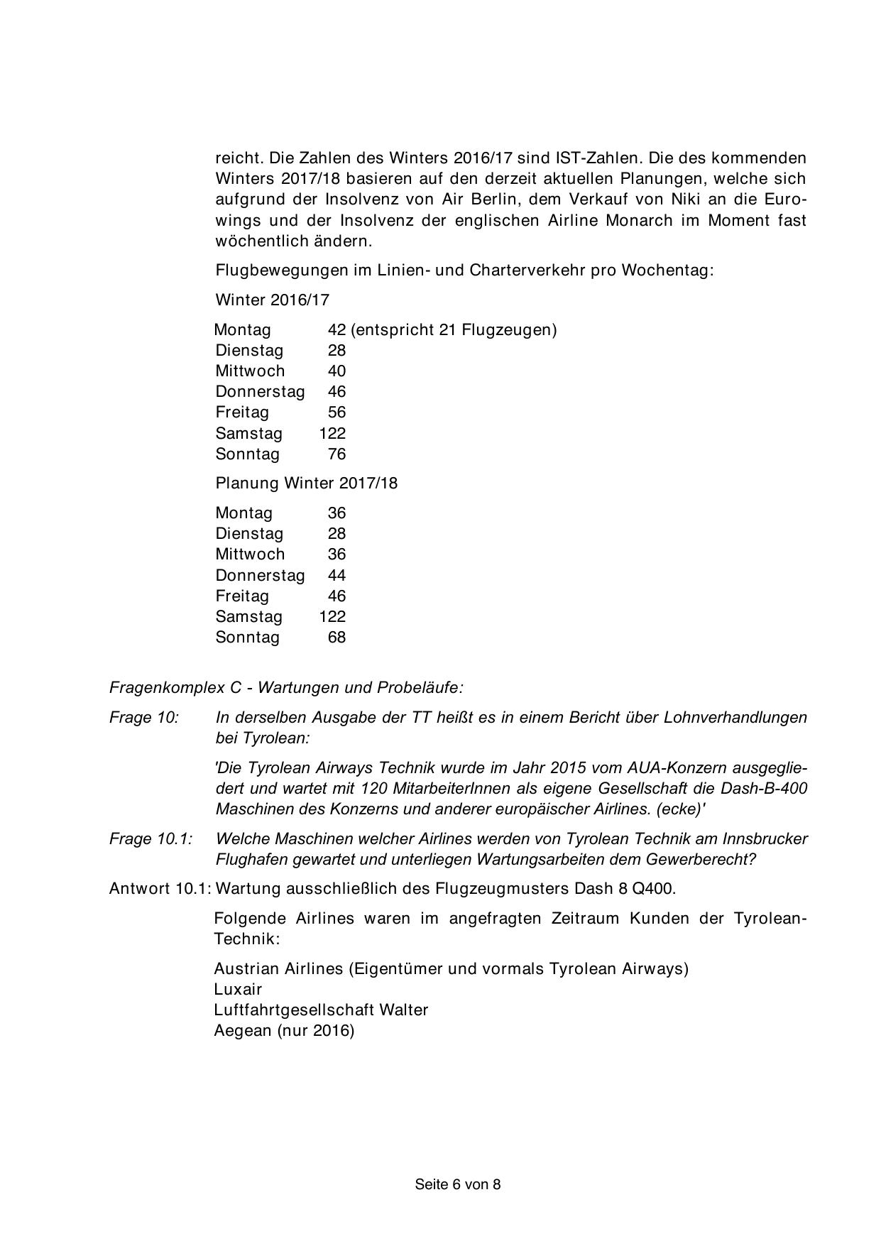 Folgende Airlines waren im angefragten Zeitraum Kunden der TyroleanTechnik: