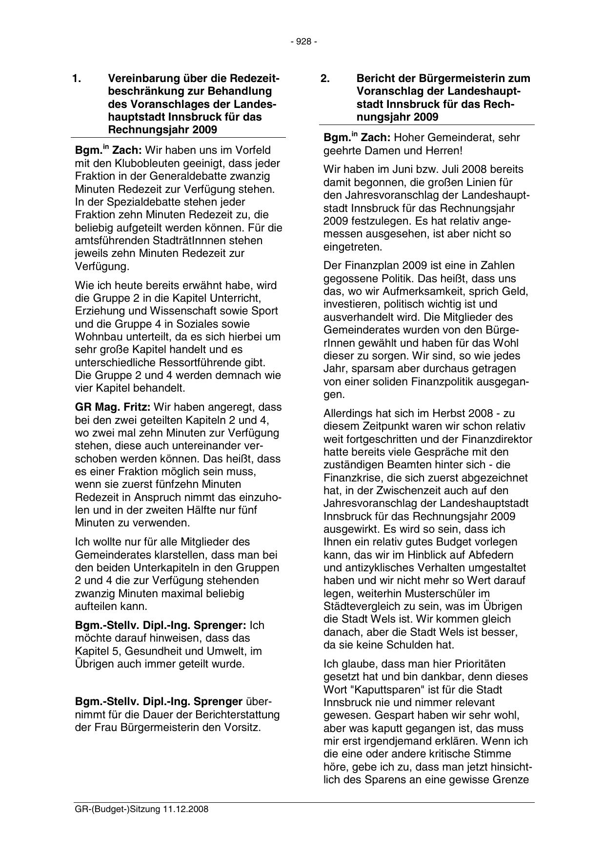 Bgm.in Zach: Hoher Gemeinderat, sehr