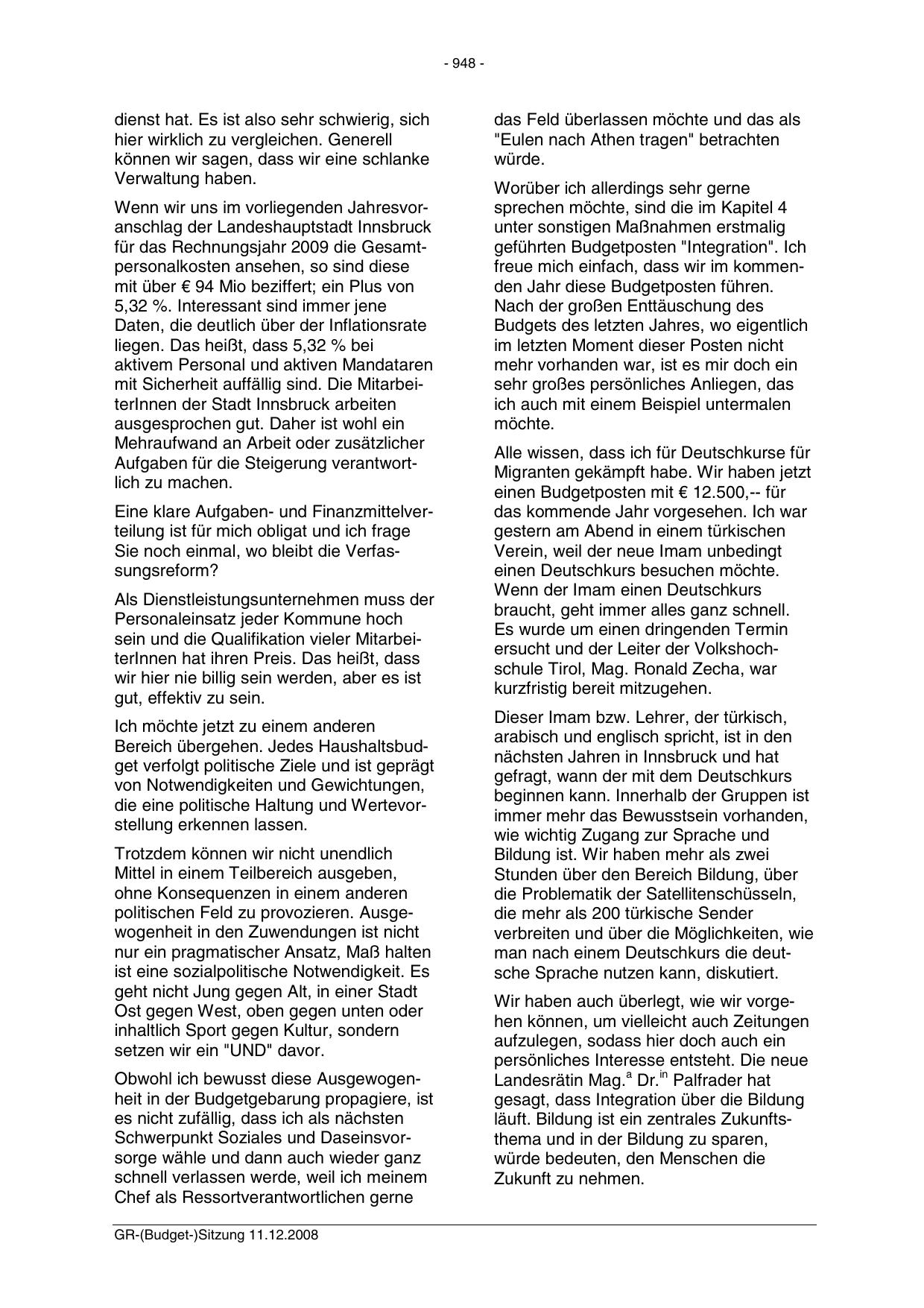 Wenn wir uns im vorliegenden Jahresvoranschlag der Landeshauptstadt Innsbruck