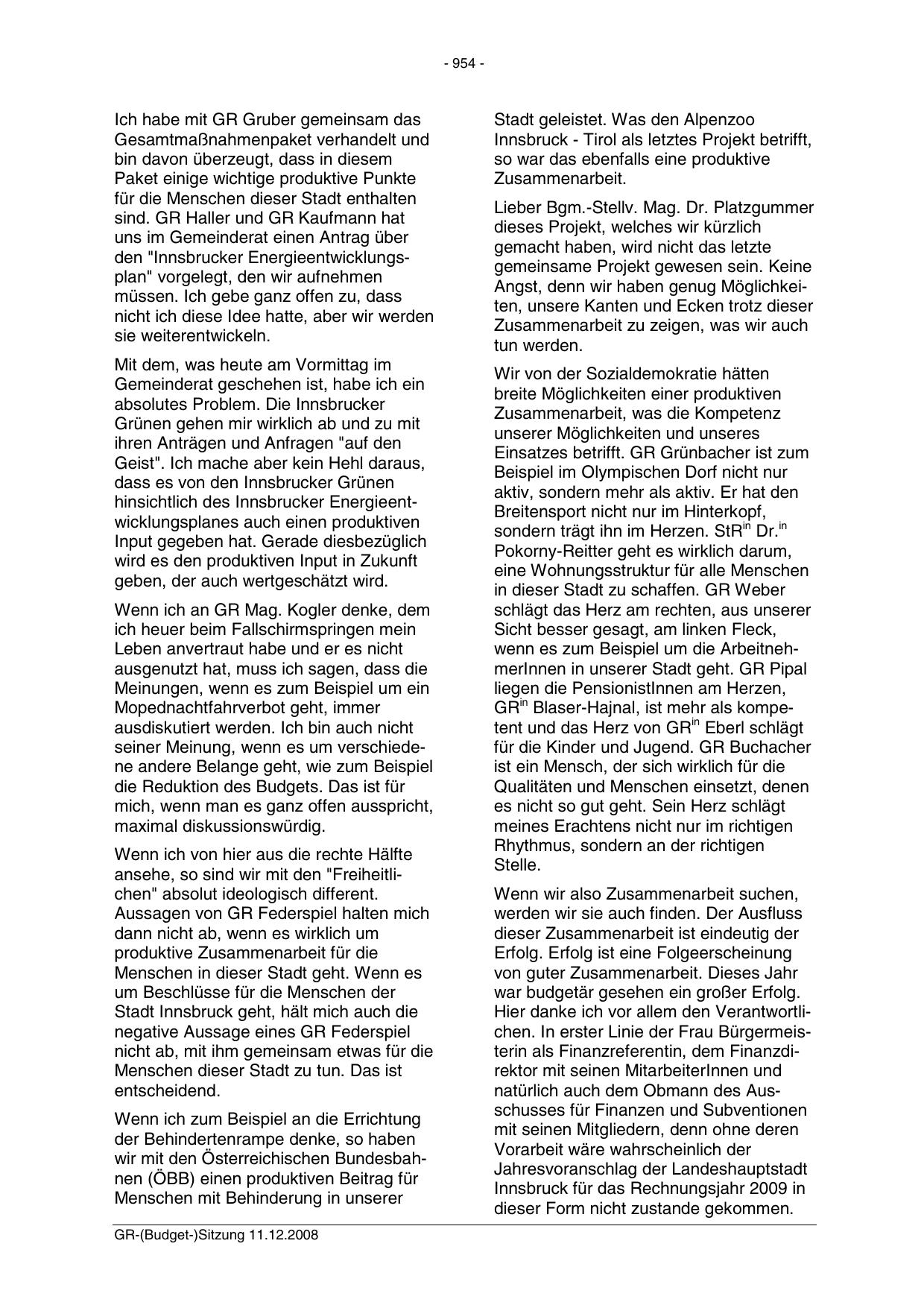 GR-(Budget-)Sitzung 11.12.2008
