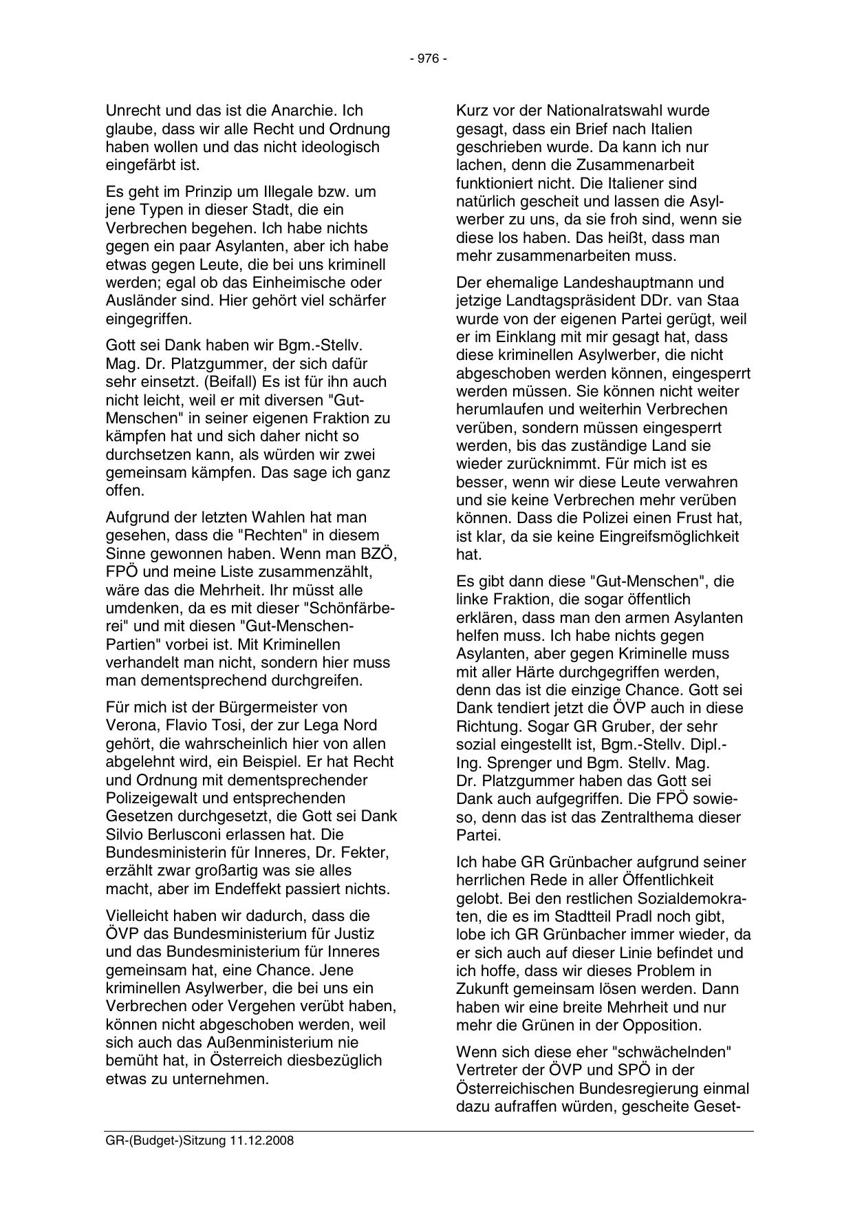 Richtung. Sogar GR Gruber, der sehr
