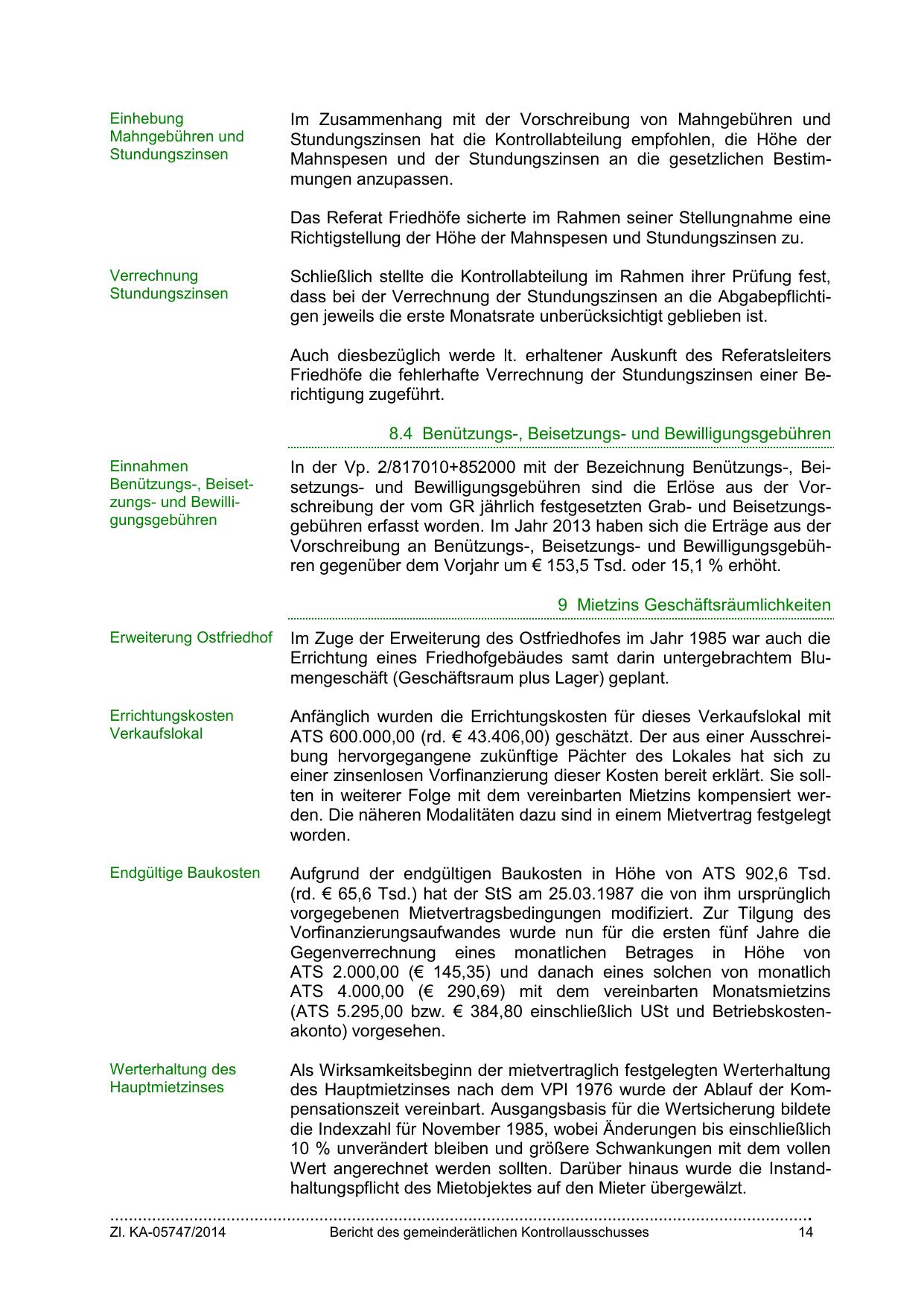 Friedhöfe die fehlerhafte Verrechnung der Stundungszinsen einer Berichtigung zugeführt.