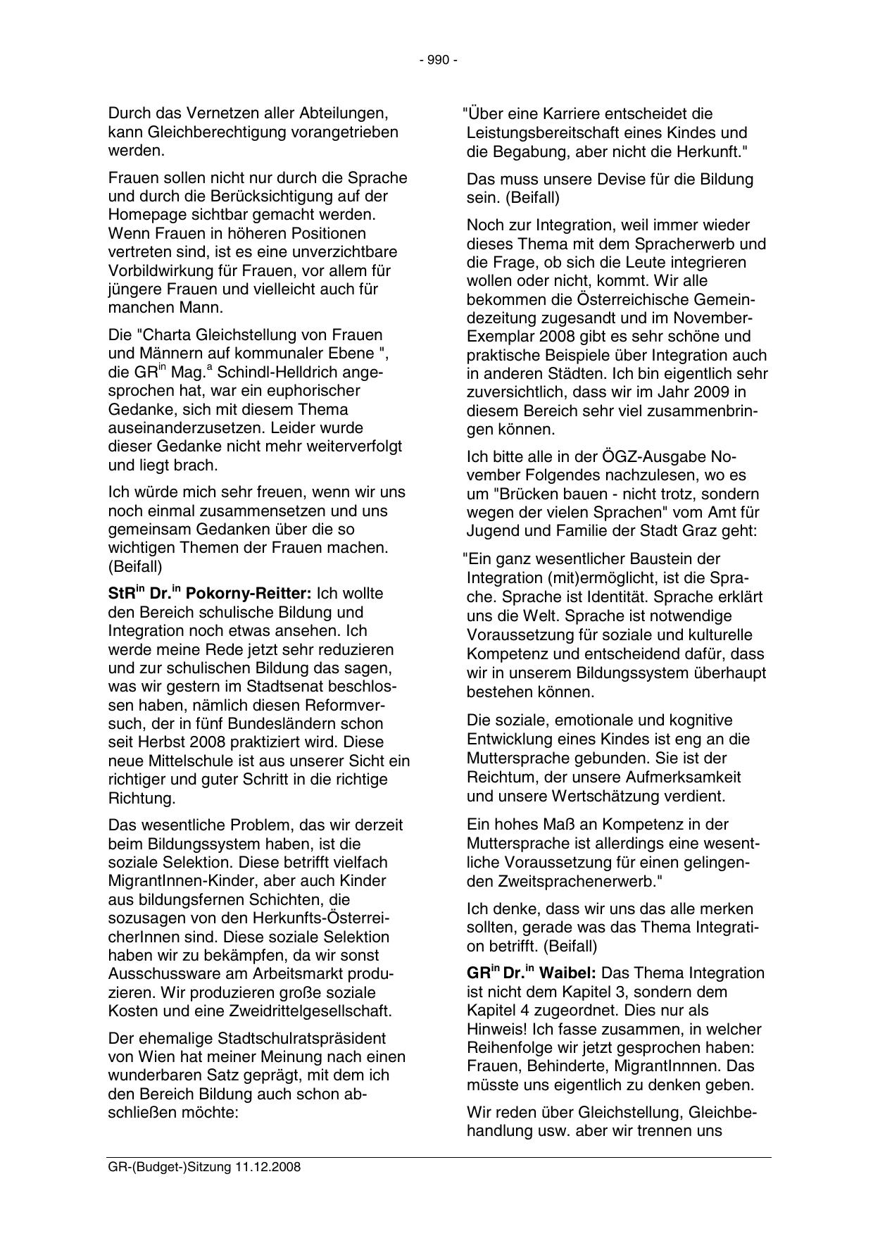 GR-(Budget-)Sitzung 11.12.2008