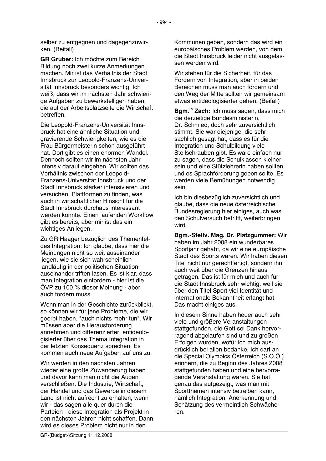 Bgm.-Stellv. Mag. Dr. Platzgummer: Wir