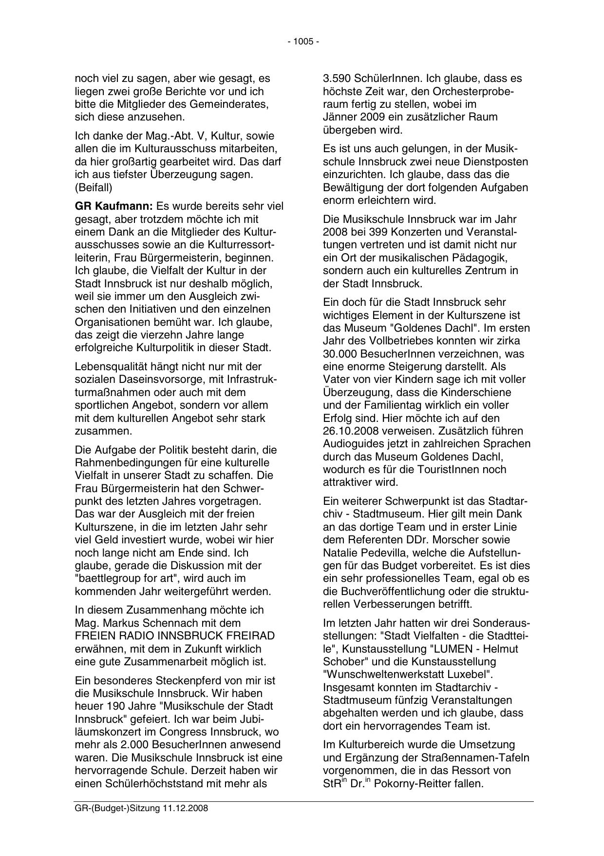 einem Dank an die Mitglieder des Kulturausschusses sowie an die Kulturressortleiterin, Frau Bürgermeisterin, beginnen.