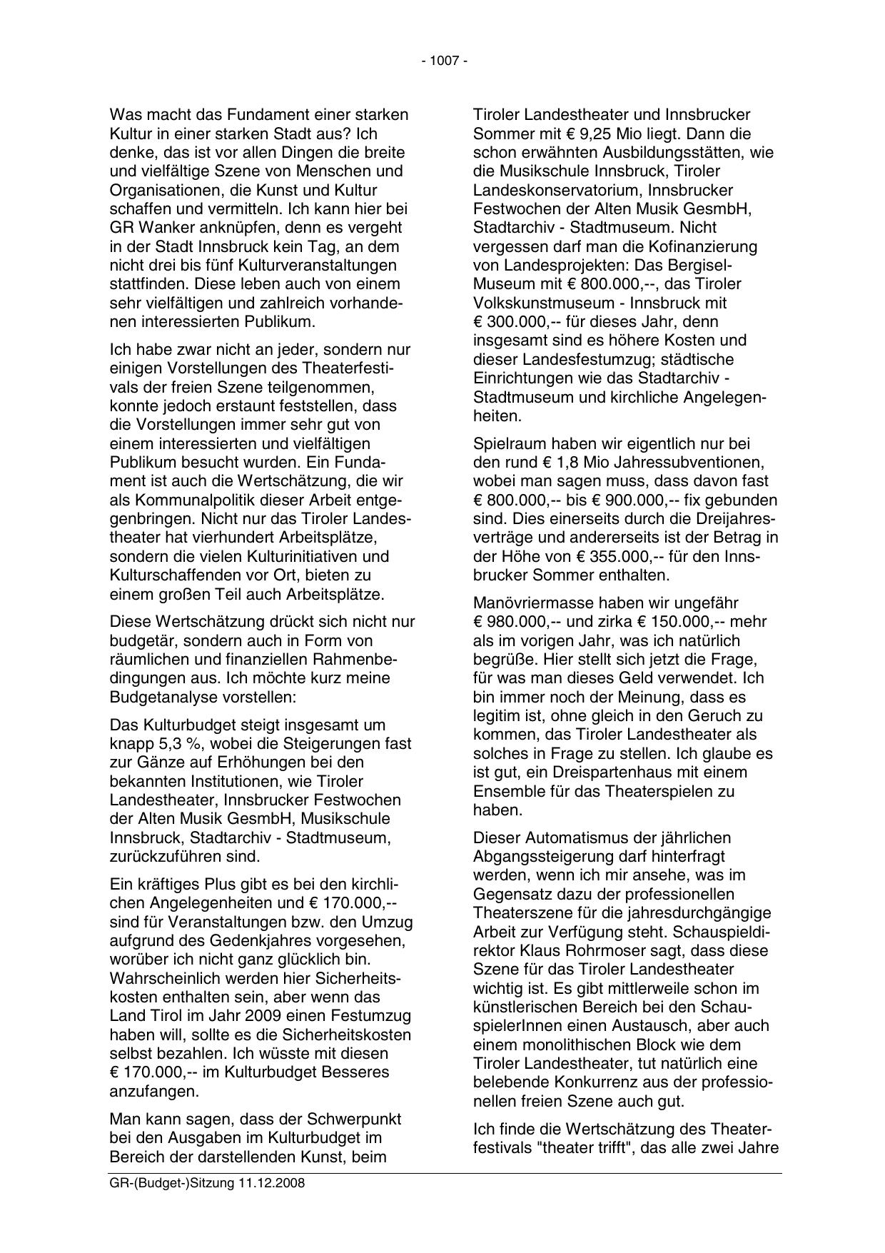 als Kommunalpolitik dieser Arbeit entgegenbringen. Nicht nur das Tiroler Landestheater hat vierhundert Arbeitsplätze,