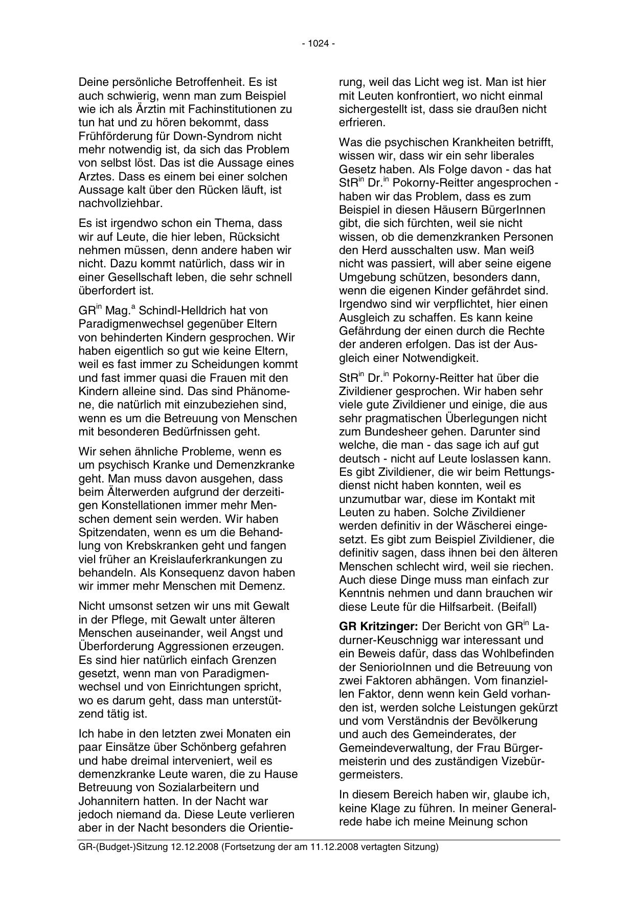 GR-(Budget-)Sitzung 12.12.2008 (Fortsetzung der am 11.12.2008 vertagten Sitzung)