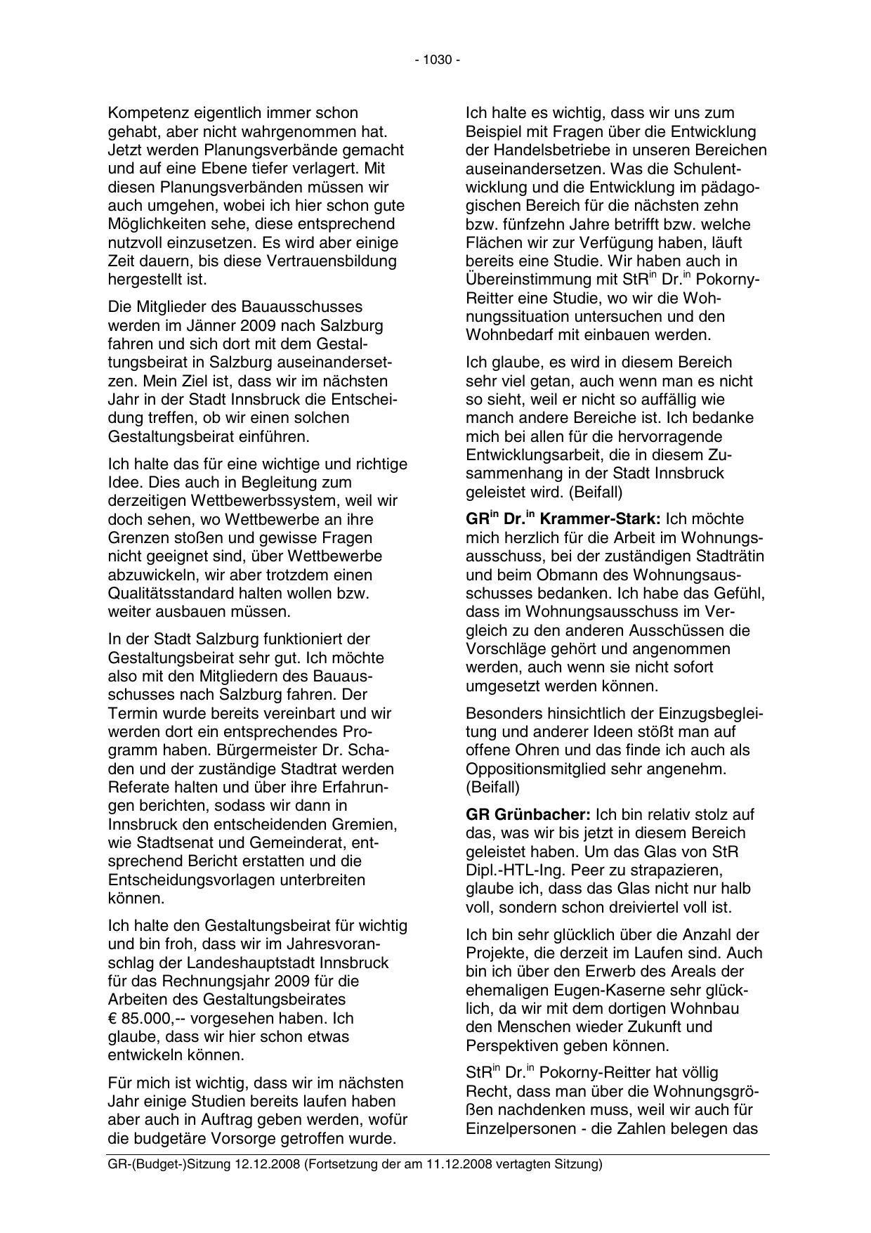 GR-(Budget-)Sitzung 12.12.2008 (Fortsetzung der am 11.12.2008 vertagten Sitzung)