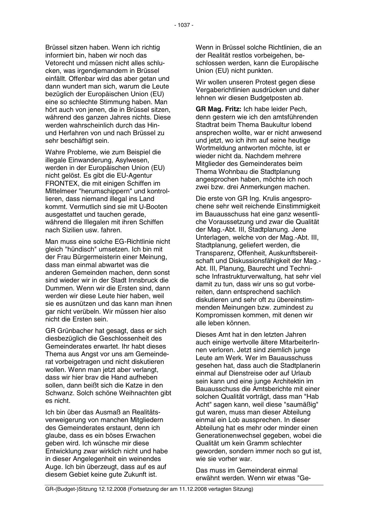GR-(Budget-)Sitzung 12.12.2008 (Fortsetzung der am 11.12.2008 vertagten Sitzung)