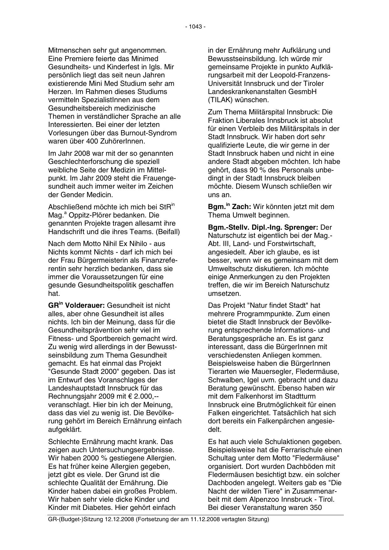 GR-(Budget-)Sitzung 12.12.2008 (Fortsetzung der am 11.12.2008 vertagten Sitzung)
