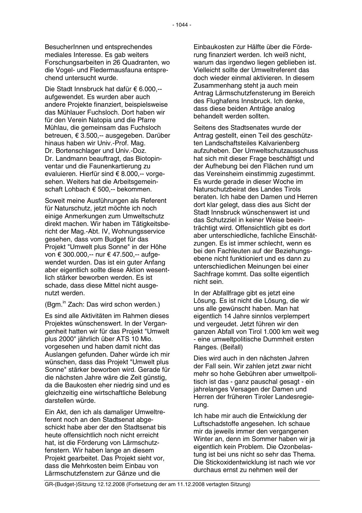 GR-(Budget-)Sitzung 12.12.2008 (Fortsetzung der am 11.12.2008 vertagten Sitzung)