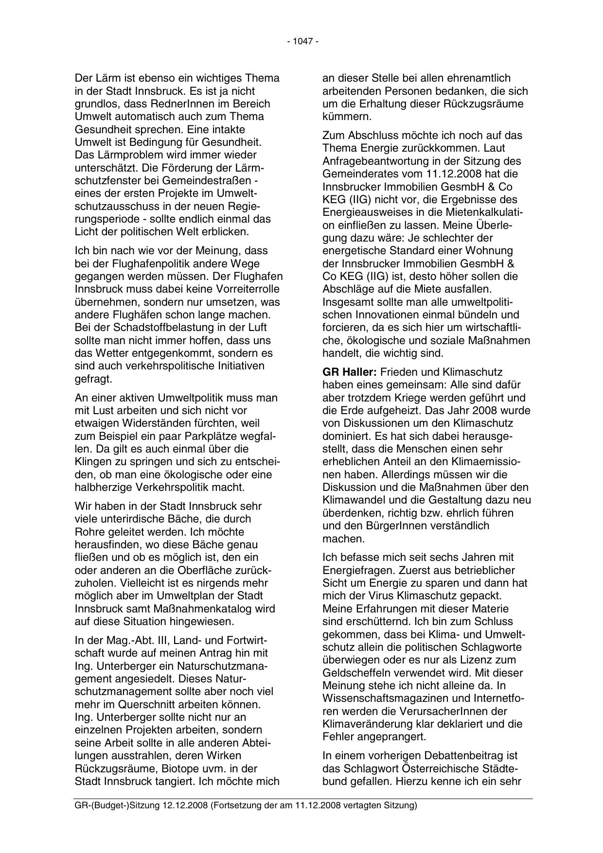 GR-(Budget-)Sitzung 12.12.2008 (Fortsetzung der am 11.12.2008 vertagten Sitzung)