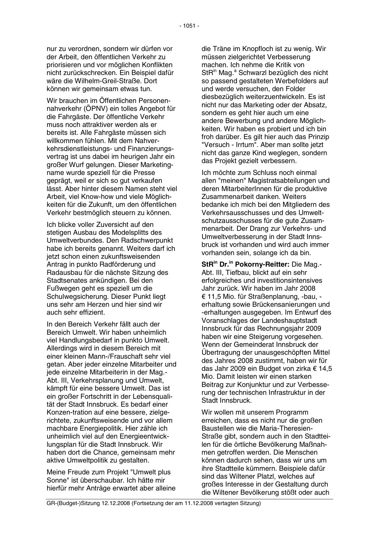 GR-(Budget-)Sitzung 12.12.2008 (Fortsetzung der am 11.12.2008 vertagten Sitzung)