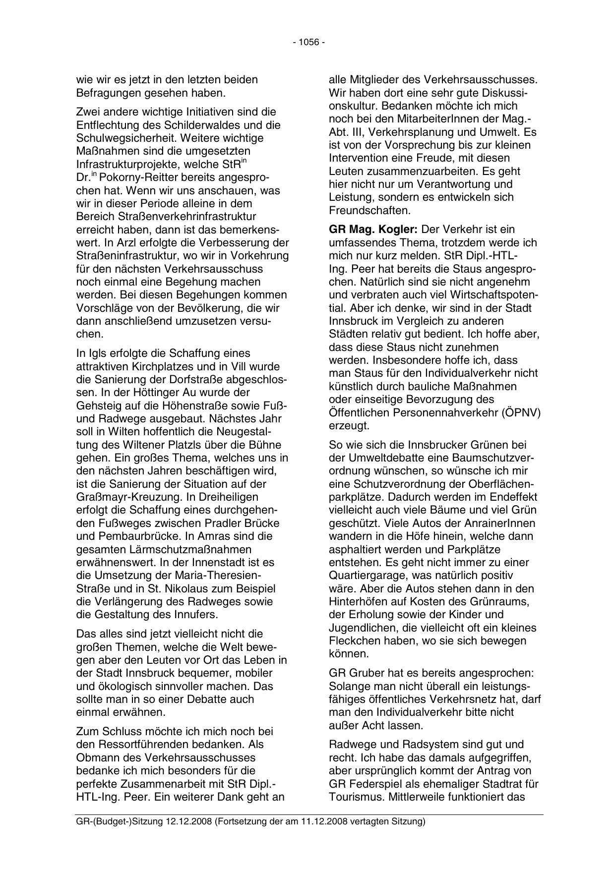 GR-(Budget-)Sitzung 12.12.2008 (Fortsetzung der am 11.12.2008 vertagten Sitzung)