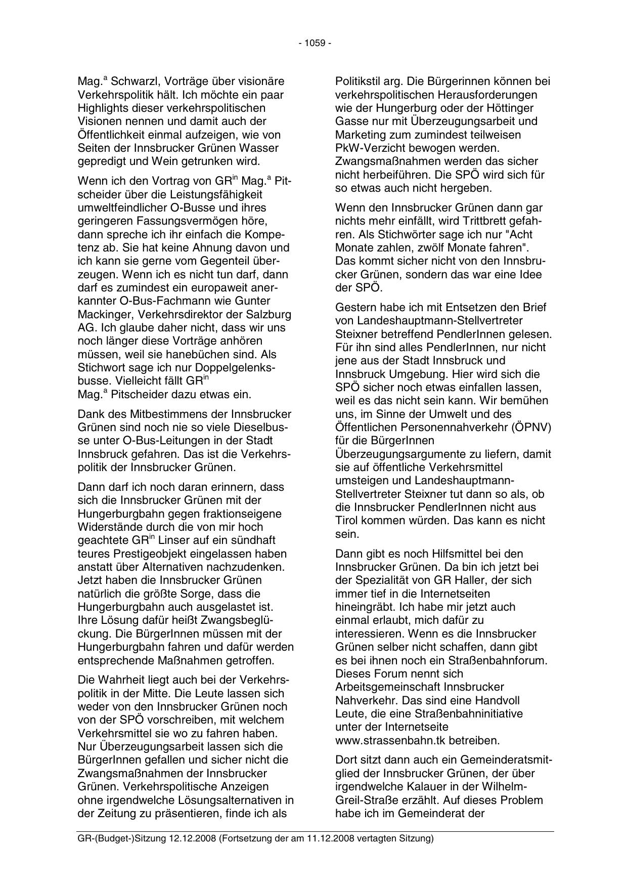 GR-(Budget-)Sitzung 12.12.2008 (Fortsetzung der am 11.12.2008 vertagten Sitzung)