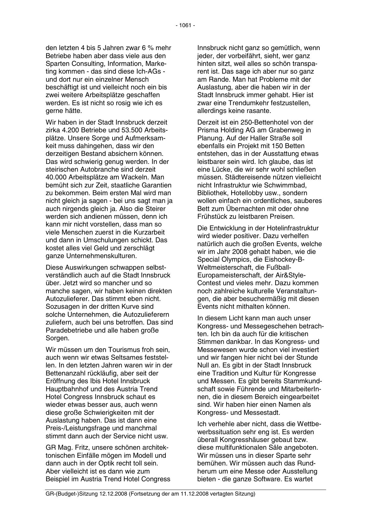 GR-(Budget-)Sitzung 12.12.2008 (Fortsetzung der am 11.12.2008 vertagten Sitzung)