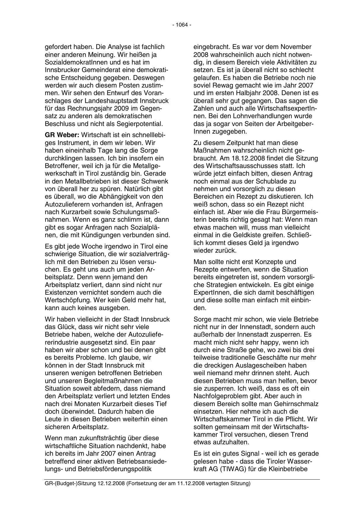 GR-(Budget-)Sitzung 12.12.2008 (Fortsetzung der am 11.12.2008 vertagten Sitzung)
