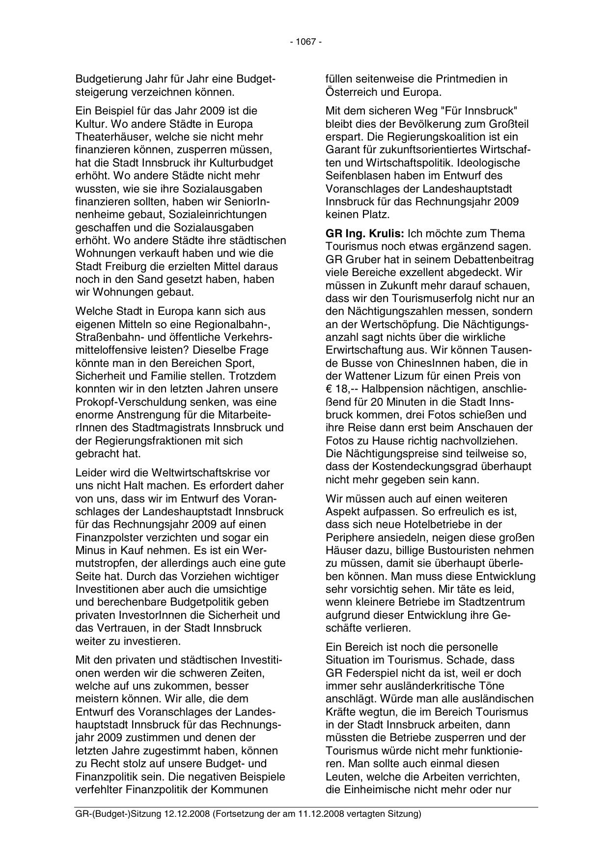 GR-(Budget-)Sitzung 12.12.2008 (Fortsetzung der am 11.12.2008 vertagten Sitzung)