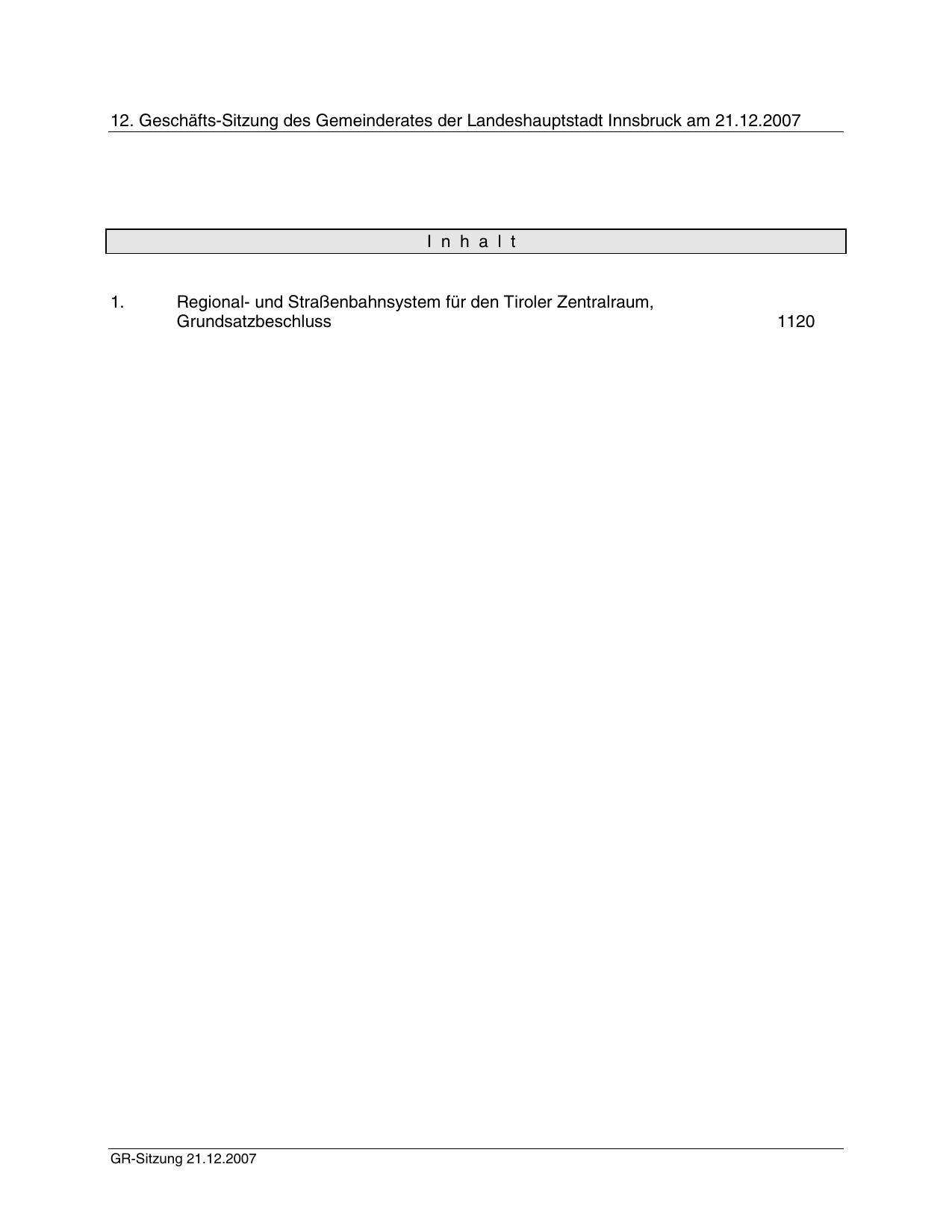 12. Geschäfts-Sitzung des Gemeinderates der Landeshauptstadt Innsbruck am 21.12.2007