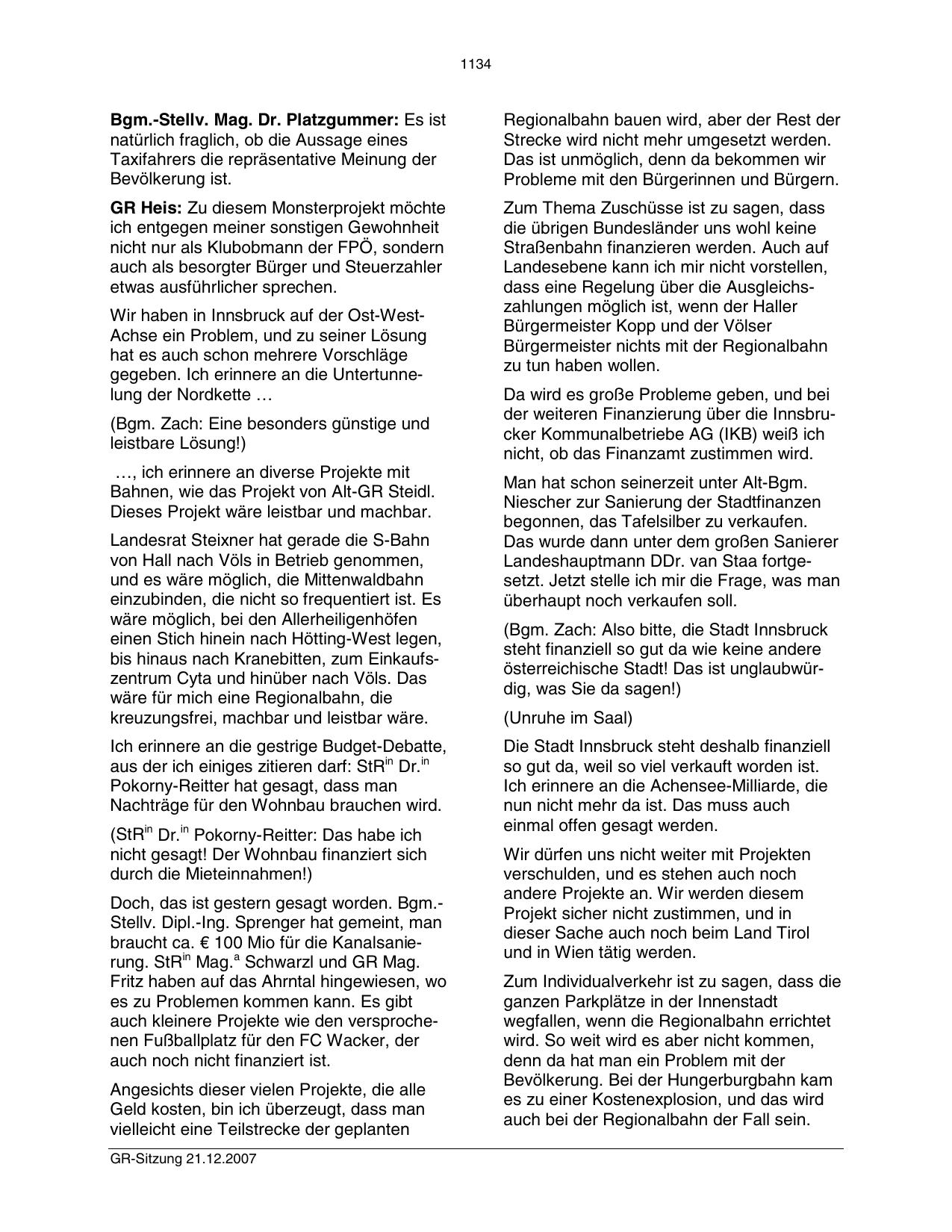 Bgm.-Stellv. Mag. Dr. Platzgummer: Es ist