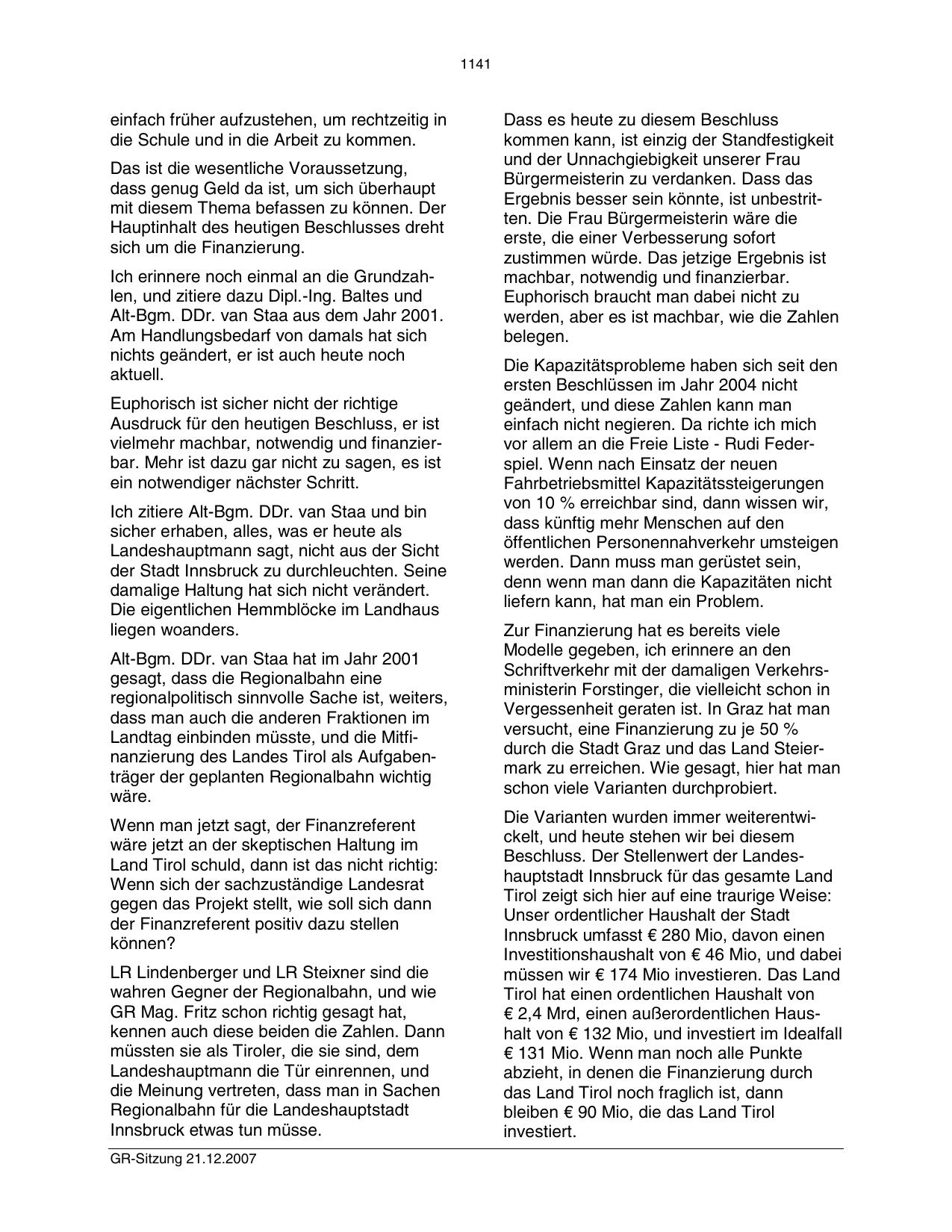 Landtag einbinden müsste, und die Mitfinanzierung des Landes Tirol als Aufgabenträger der geplanten Regionalbahn wichtig