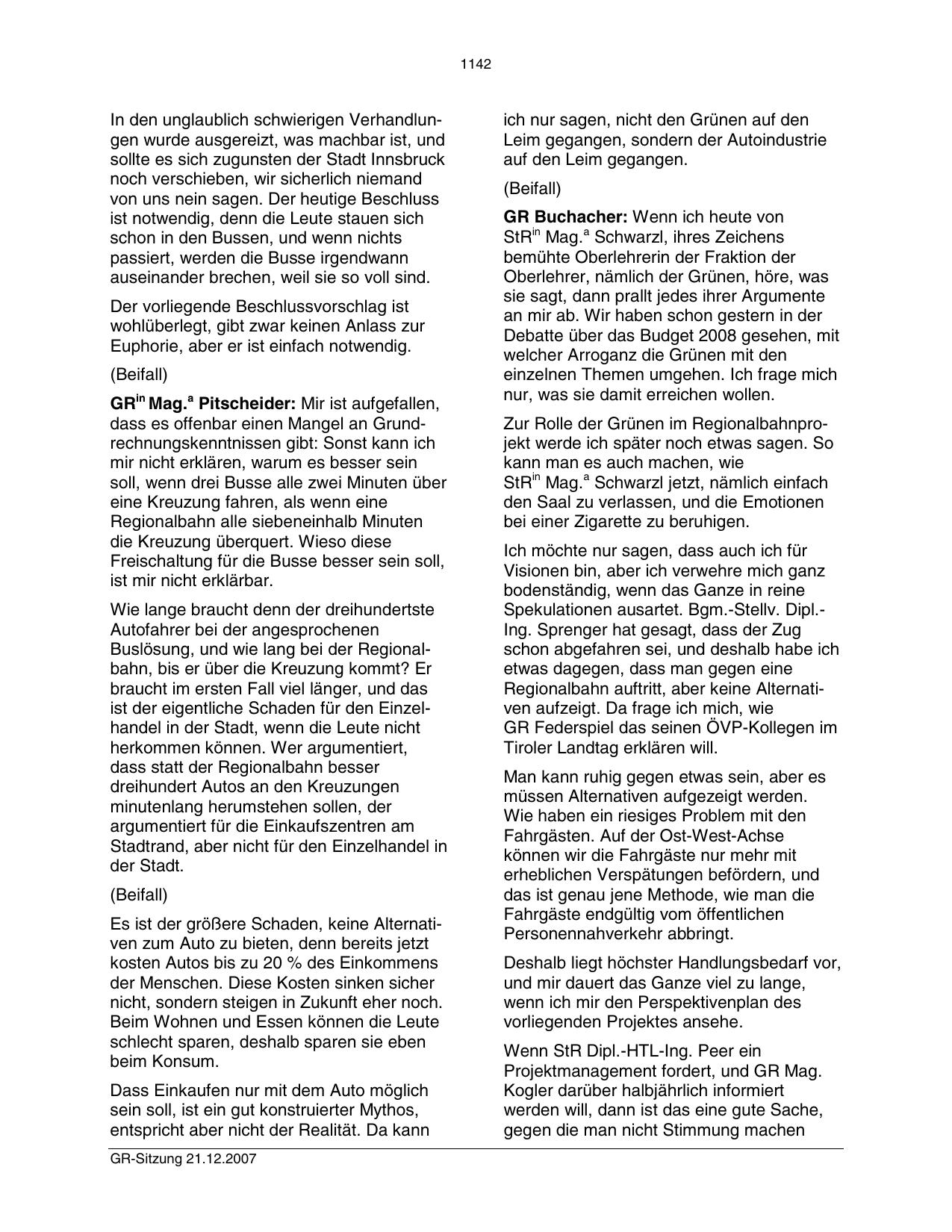 Spekulationen ausartet. Bgm.-Stellv. Dipl.Ing. Sprenger hat gesagt, dass der Zug